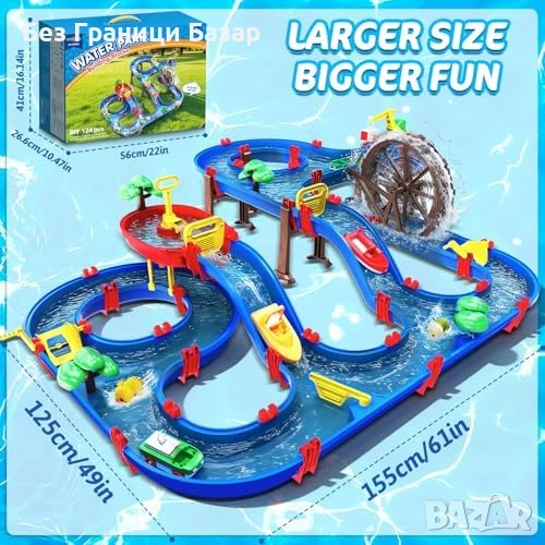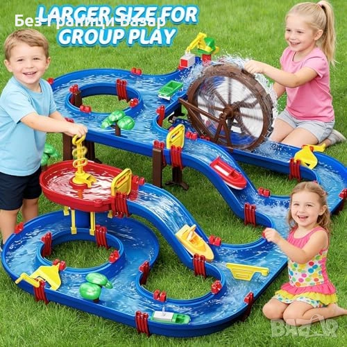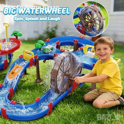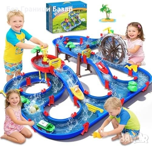 Нова играчка Детски воден комплект с 2 нива помпа лодки и водно колело