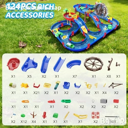 Включва 124 части за сглобяване на водни канали, шлюзове, тунели и станции