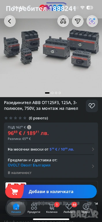 Разединител ABB OT125F3, 125A, 3-полюсен, 750V, за монтаж на панел, снимка 1 - Друга електроника - 54093203 Разединител ABB OT125F3, 125A, 3-полюсен, 750V, за монтаж на панел, снимка 2 - Друга електроника - 54093203 Разединител ABB OT125F3, 125A, 3-полюсен, 750V, за монтаж на панел, снимка 3 - Друга електроника - 54093203 Разединител ABB OT125F3, 125A, 3-полюсен, 750V, за монтаж на панел, снимка 4 - Друга електроника - 54093203 Разединител ABB OT125F3, 125A, 3-полюсен, 750V, за монтаж на панел, снимка 5 - Друга електроника - 54093203 1/5