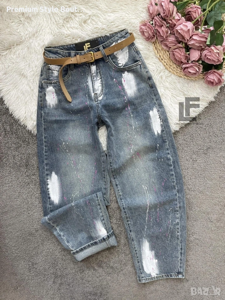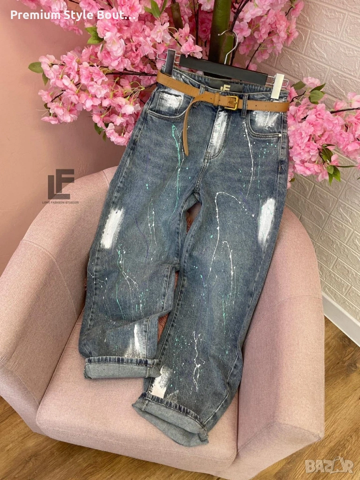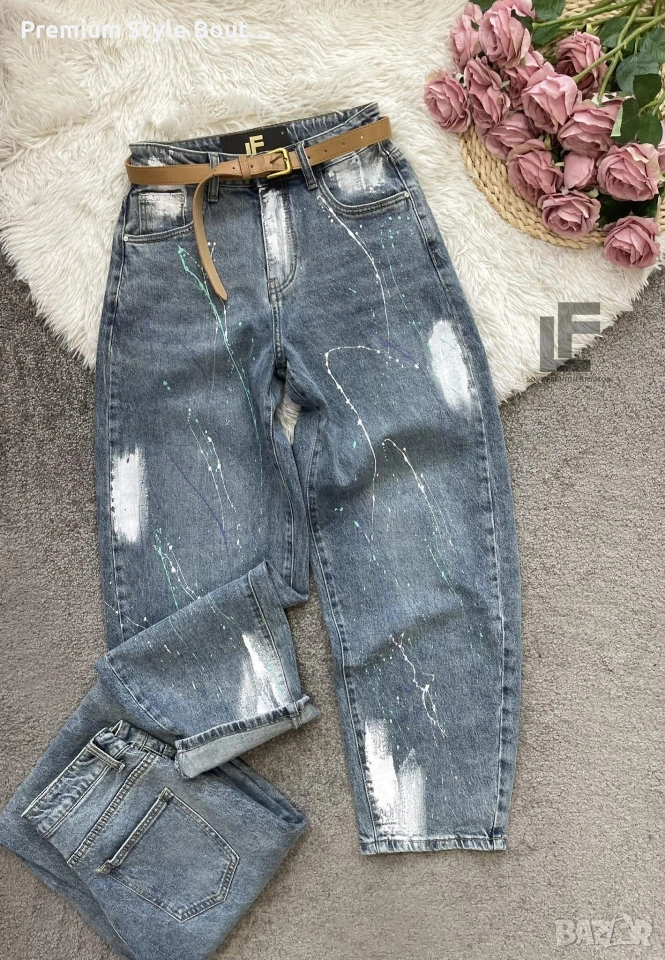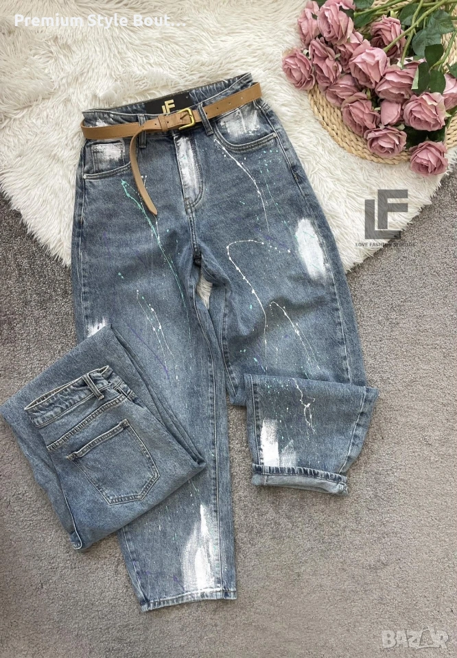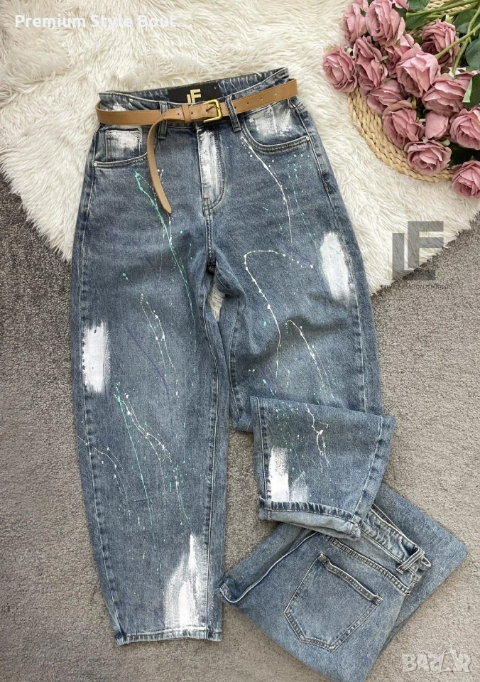 Дънки LFS BestSeller Green 1048 33.90€ (66.30лв.) Материя: Деним със средна еластичност ( 75% памук, 25% полиестър ) Кройка: Кройката е свободна, със стесняващи се крачоли и висока талия и любимите ни хенд-мейд рисунки #LFS Стилистите съветват: Любима кройка и стилен цвят, от които не можем да свалим очи. Точно тези са със средна към висока талия, прави с издължаващ ефект! Излишно е да казваме, че са в графа #musthave, но ако все пак се чудите дали имате нужда от тях и с какво ще ги съчетаете, казваме Ви – да, имайте ги и ги носете смело с всичко в гардероба си от ризи до дантелени блузи или oversize тениски. Дължина: Цяла дължина 100 см, дължина от вътрешната част на крачола 70 см Размер на снимката – S Коланът е подарък към всеки чифт