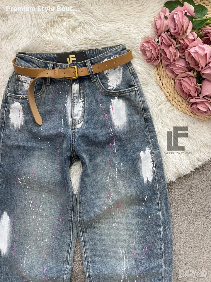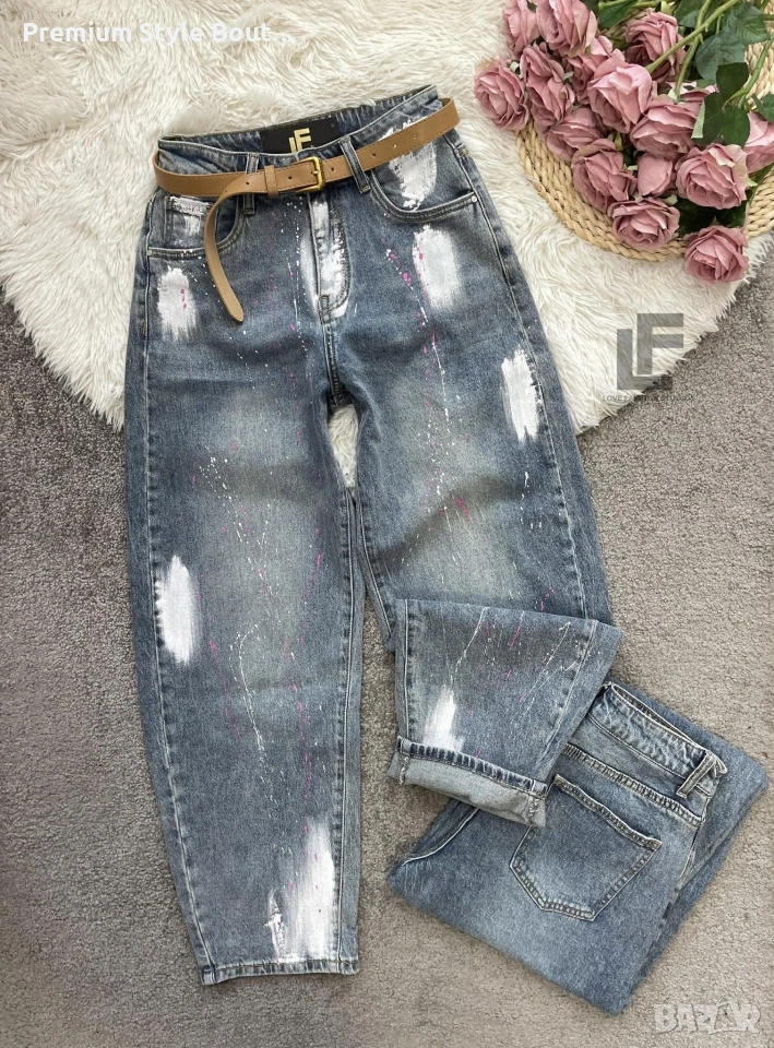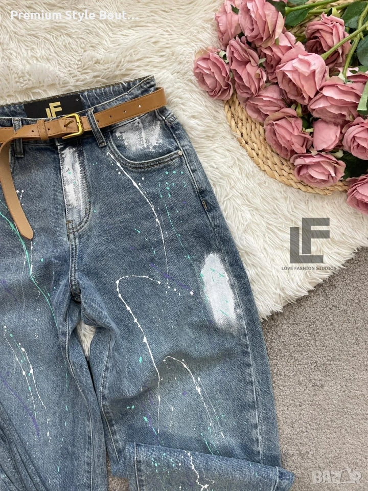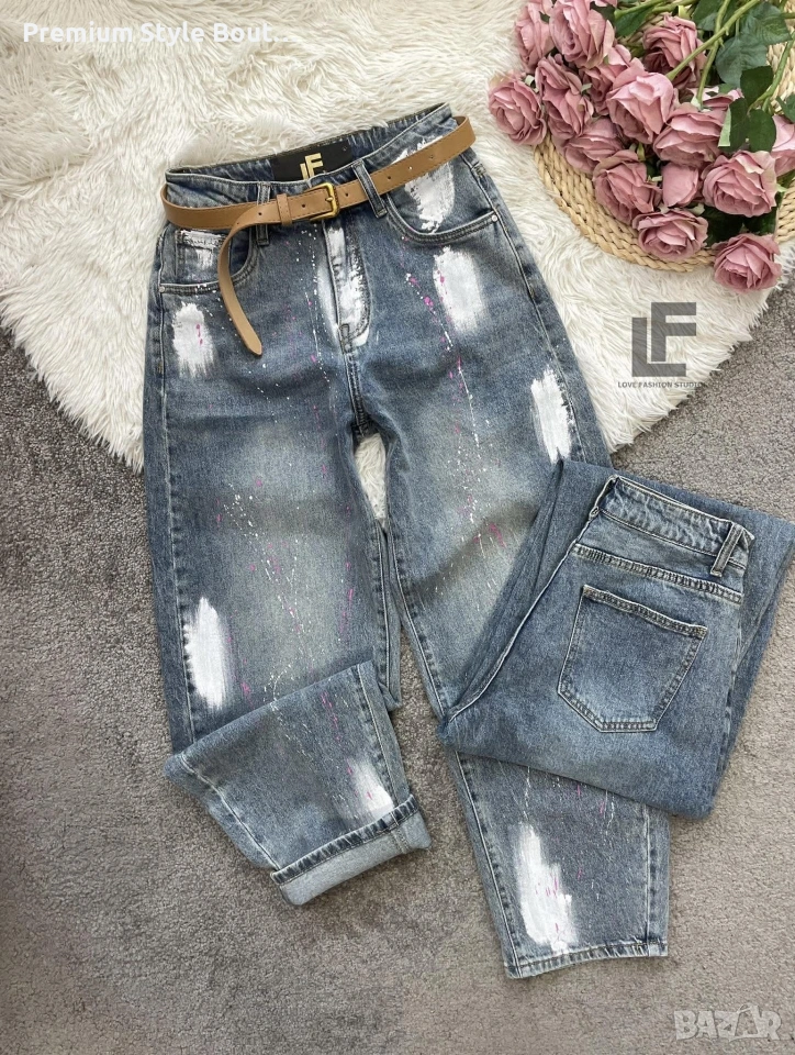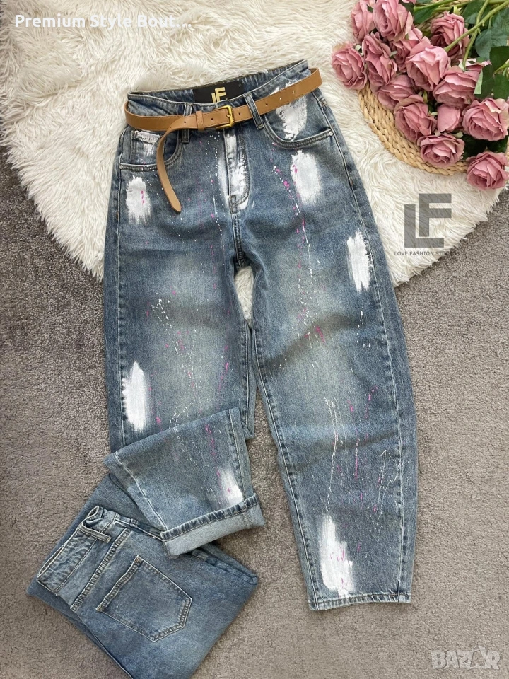 Дънки LFS BestSeller Green 1048 33.90€ (66.30лв.) Материя: Деним със средна еластичност ( 75% памук, 25% полиестър ) Кройка: Кройката е свободна, със стесняващи се крачоли и висока талия и любимите ни хенд-мейд рисунки #LFS Стилистите съветват: Любима кройка и стилен цвят, от които не можем да свалим очи. Точно тези са със средна към висока талия, прави с издължаващ ефект! Излишно е да казваме, че са в графа #musthave, но ако все пак се чудите дали имате нужда от тях и с какво ще ги съчетаете, казваме Ви – да, имайте ги и ги носете смело с всичко в гардероба си от ризи до дантелени блузи или oversize тениски. Дължина: Цяла дължина 100 см, дължина от вътрешната част на крачола 70 см Размер на снимката – S Коланът е подарък към всеки чифт