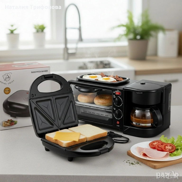Печка, тостер и кафемашина – 3в1 + ПОДАРЪК Уред за сандвичи Royal Swiss