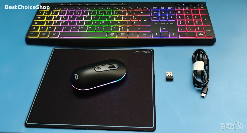 Комплектът работи с Windows и macOS. Идеален за офис, домашна употреба или гейминг с красиво осветление.