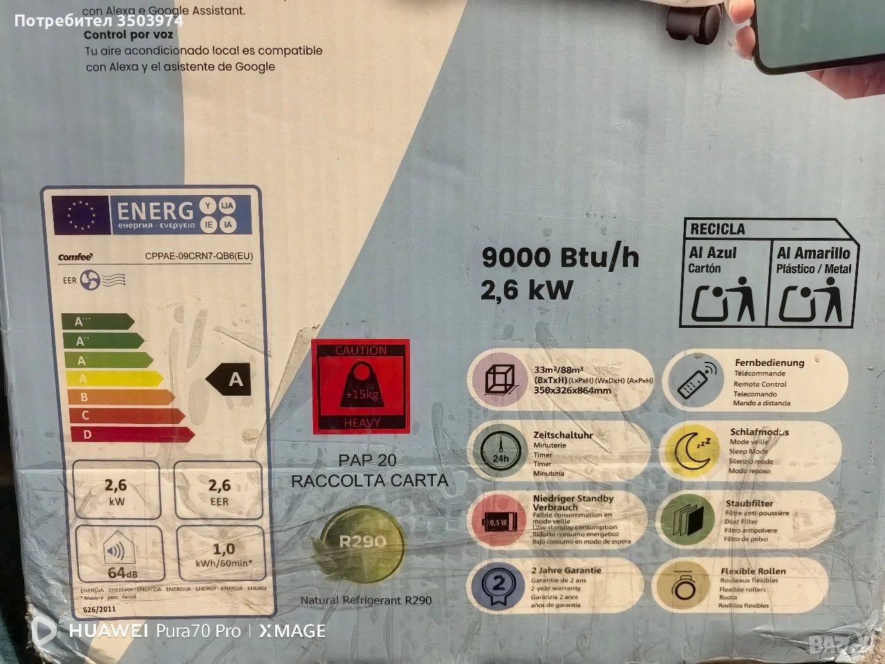 Марката е Comfee 9" . Климатика е чисто нов, никога не е употребяван, с оригиналния кашон. Работи с фреон. 2,6 kw разход на енергия, охлажда до 33m² и работи от 17° до 35° чрез приложение на телефона. Подходящ е както за офиси така и за апартаменти , каравана , кемпер или друг вид помещения.