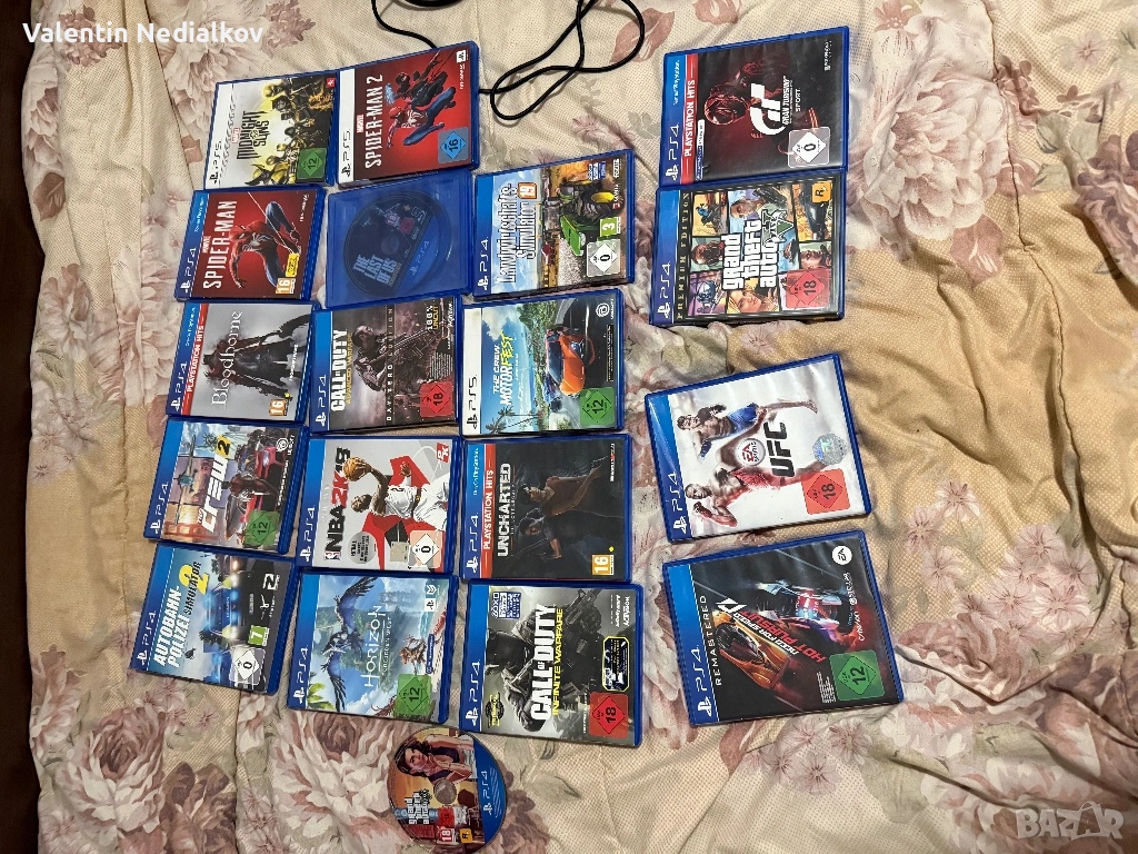 Продавам ps4 slim 1TB с много игри. Много добро състояние работи идеално.Дава се със 3контролера и стойка за зарежда и 19игри.Продава се със всичко от снимките затова и цената е такава. Пращам с преглед и тест.