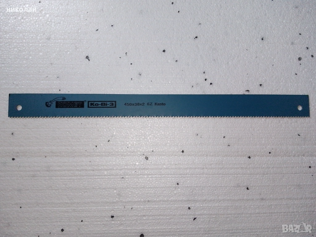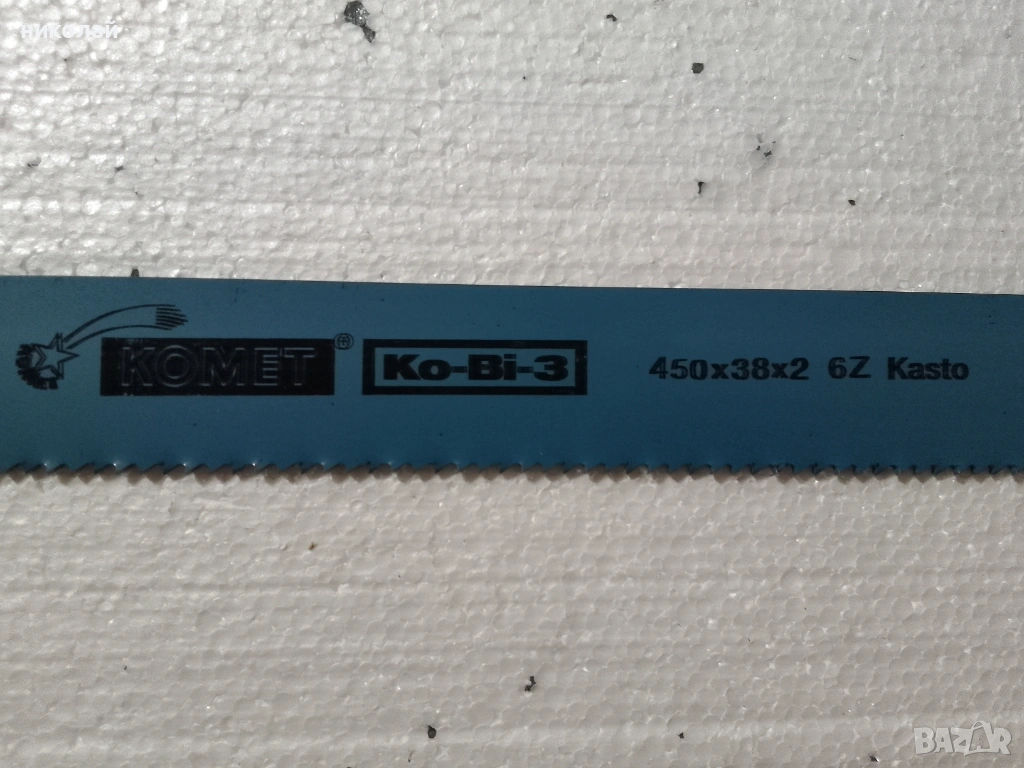 Чисто нов лист за механична ножовка KOMET.Размерите на листа са дължина 450мм,широчина 38мм и дебелина 2 мм.