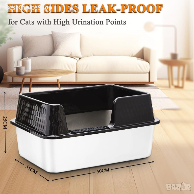- Дизайн с отворен отгоре: Нашата кутия за котешка тоалетна е с отворен отгоре, този дизайн е предназначен за лесно наблюдение на здравословното състояние на котката, котките могат свободно да влизат и излизат, като същевременно намаляват несигурността на котката в затворено пространство, дизайнът с горен вход улеснява и разсейването на миризмите.