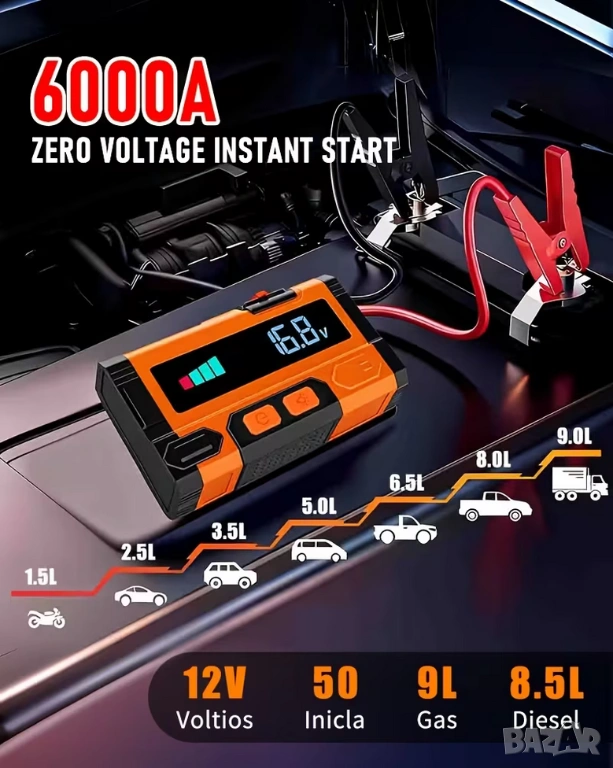 Jump Starter (бичѐ) - 12V/6000А бустер за подаване на ток и Power Bank