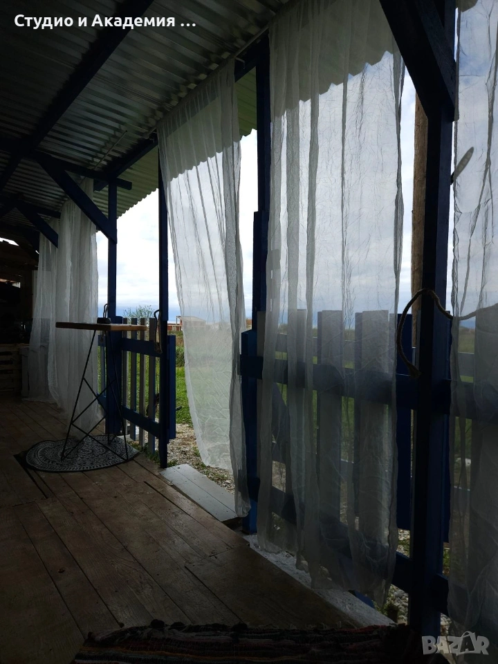 • просторна веранда с бели завеси