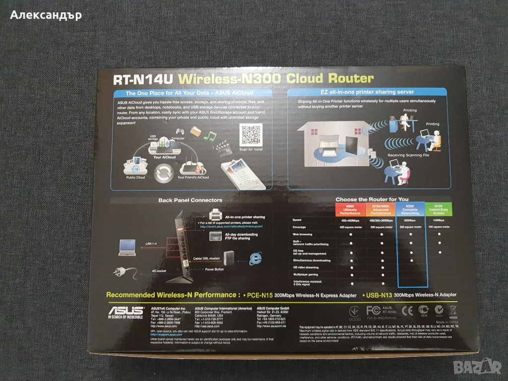 Wi-Fi Router ASUS RT-N14U 300Mbps s USB порт → Обява 54093871
