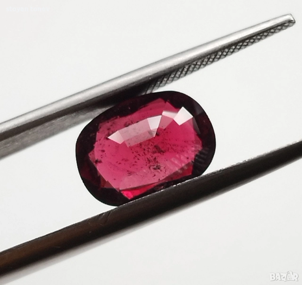 Красив, ярък и наситен червен цвят с добра дълбочина и жив блясък. Камъкът има отлична светлопропускливост и показва красив червен оттенък, който много наподобява висококачествен рубин. Под различни ъгли на осветление цветът изглежда още по-жив и привлекателен.