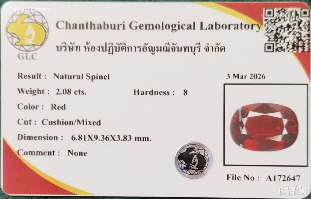 Това е естествен шпинел от едно от най-добрите находища в света, придружен с официален сертификат.