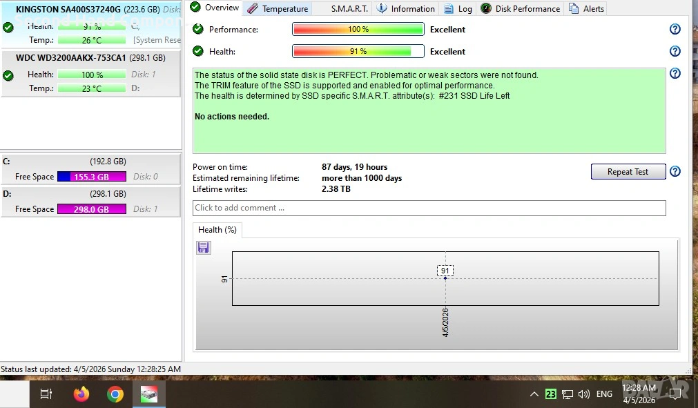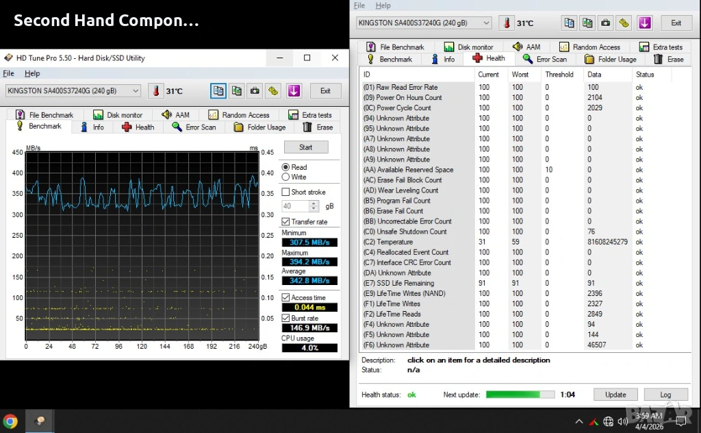 -SSD: Kingston A400 256GB SATA3 оставил съм овер провизинг.
