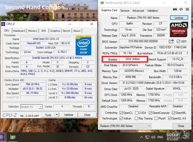 -Видео Карта: RX 460 4GB Sapphire Nitro 128-bit GDDR5 PCI-E x8 (с отключени шейдъри с моднат биос кадърно без проблеми с драйвърите).