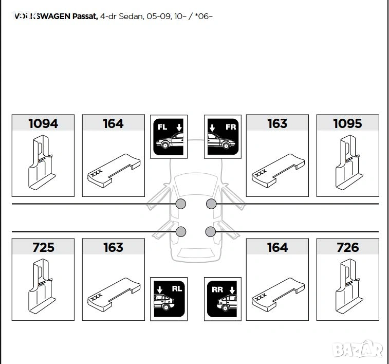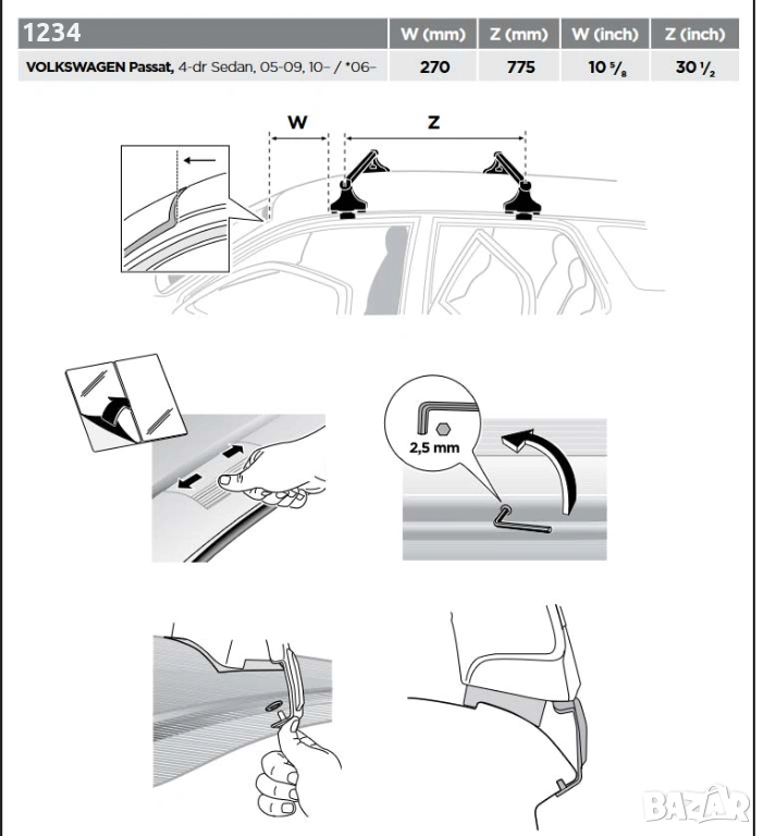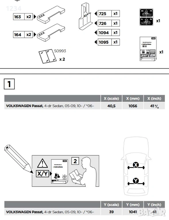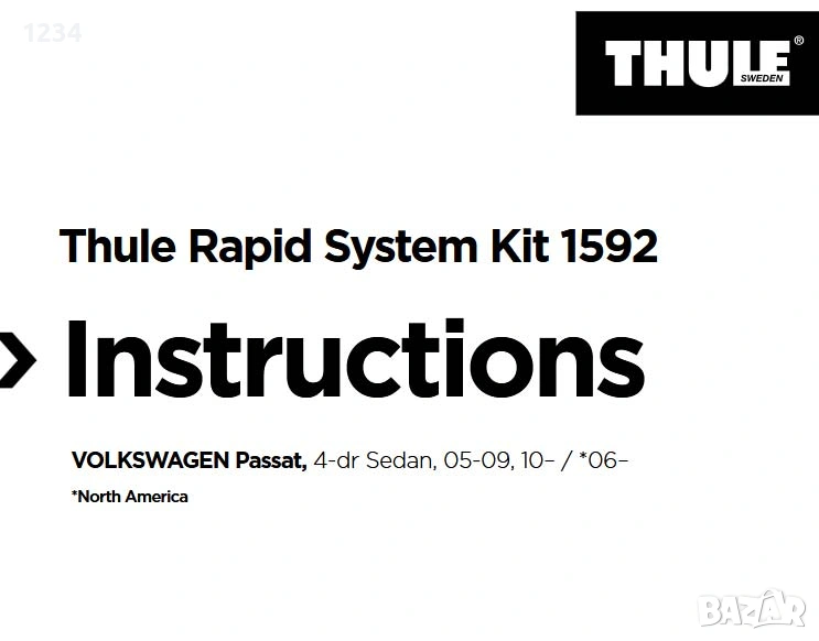 THULE монтажен Kit 1592 за VOLKSWAGEN Passat, 4-dr Sedan, 2005-2009 и след 2010г.