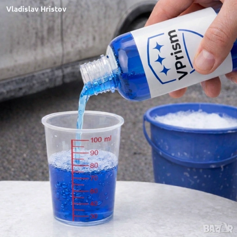 1. Разреждане: Разреди 100 ml продукт в кофа с 10 л вода (1:100). За по-силно замърсяване — 1:50.