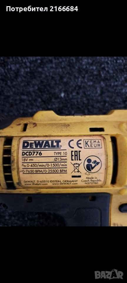 Винтоверт Dewalt DCD776 → Обява 54094695
