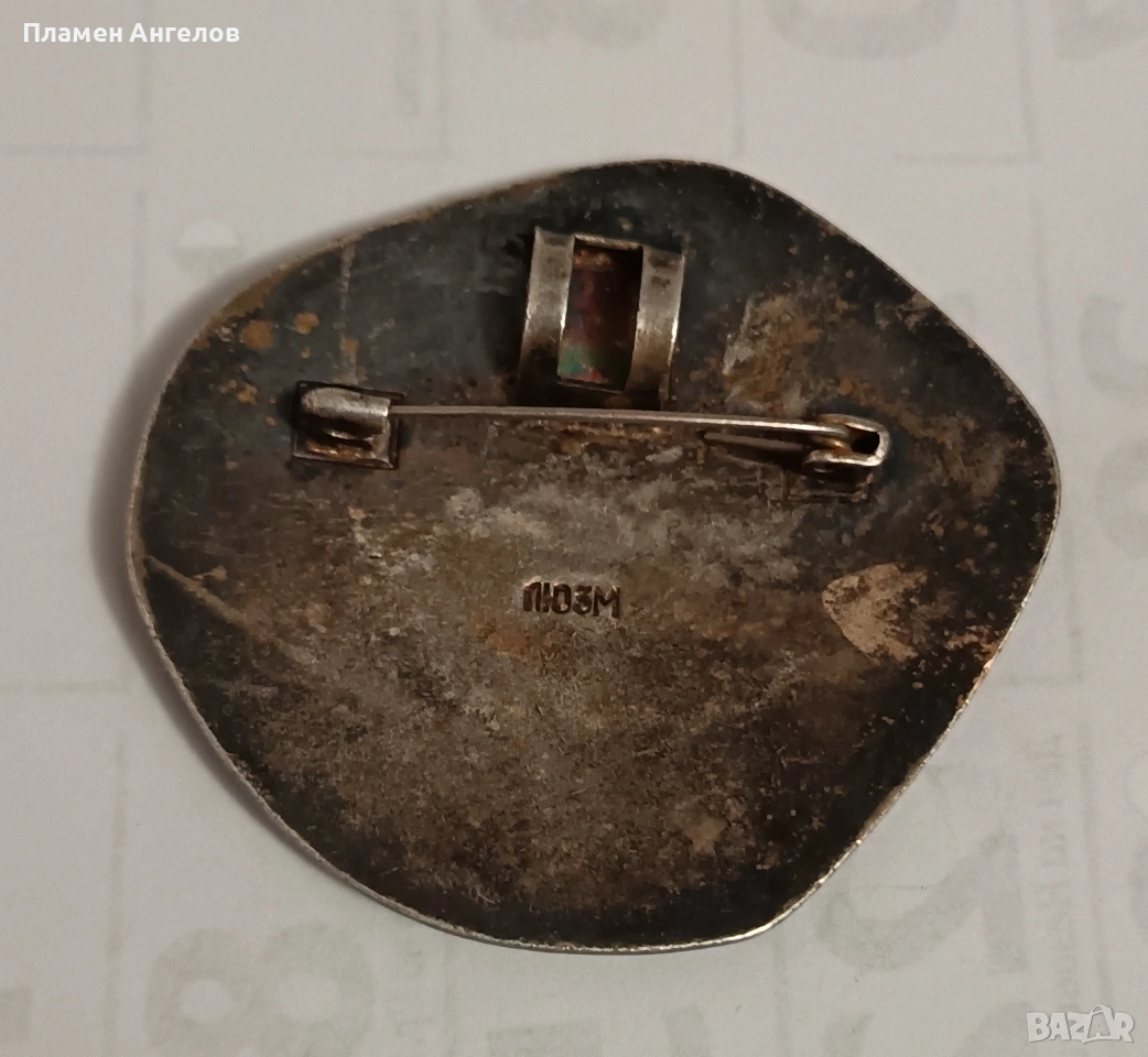 Рядка, ретро брошка, медальон - ЛЮЗМ емайл, посребрен мелхиор.