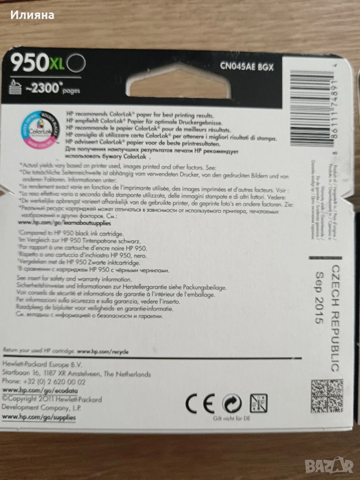 Оригинална мастилена касета HP 950XL с висок капацитет, черна Цвят → Обява 54094787