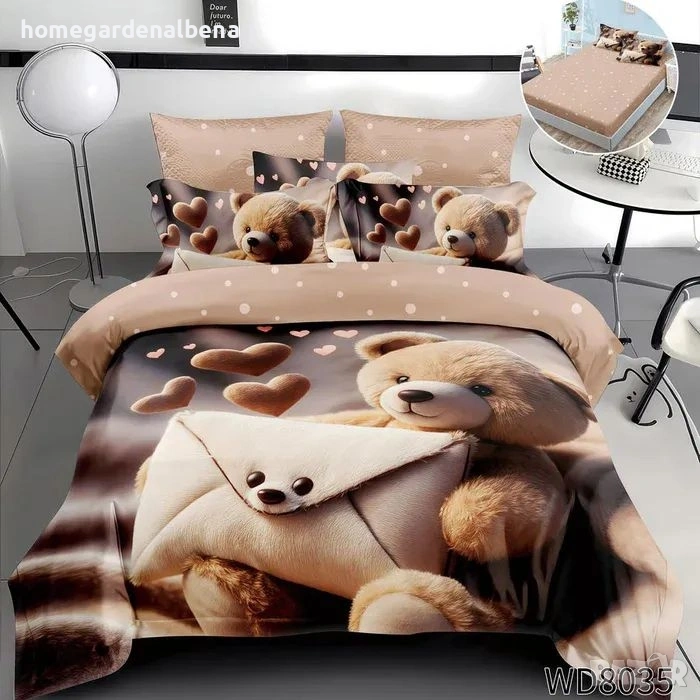 Ключови думи: спален комплект, чаршаф с ластик, плик за завивка, калъфки, 100% памук, флорален, пеперуди, сърца, детски десен, двоен комплект, спалня, домашен текстил, подарък