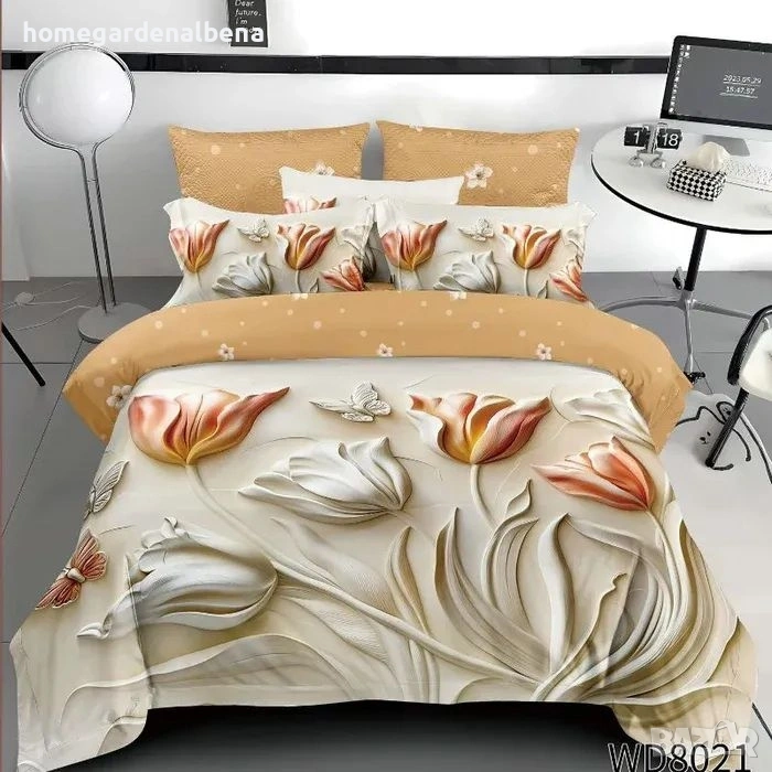 Спален комплект от 100% памук с богат избор от 20 красиви десена – флорални мотиви, пеперуди, сърца, детски щампи и още. Памукът осигурява мекота, въздухопропускливост и комфорт през всички сезони – приятен за тялото както през лятото, така и през зимата.