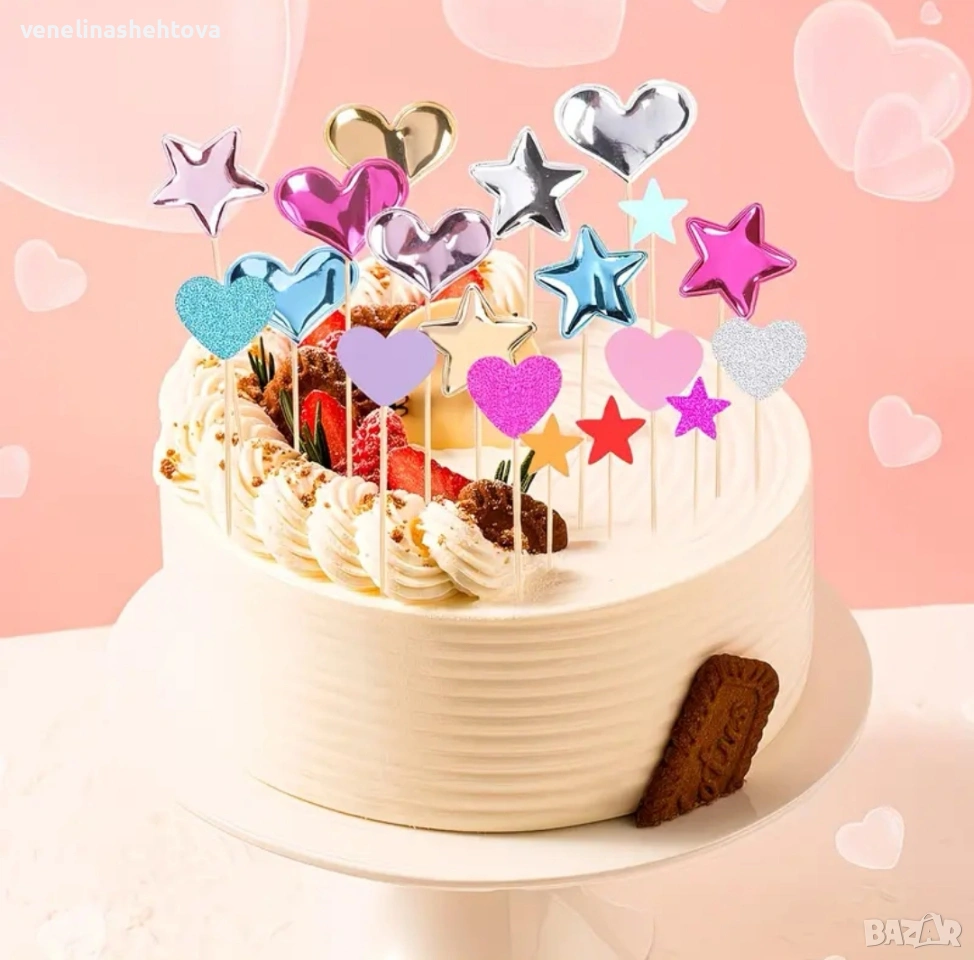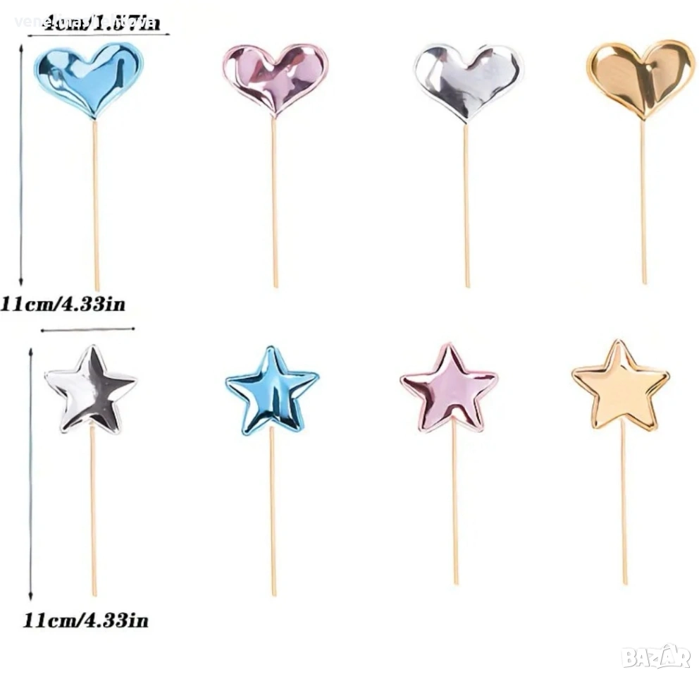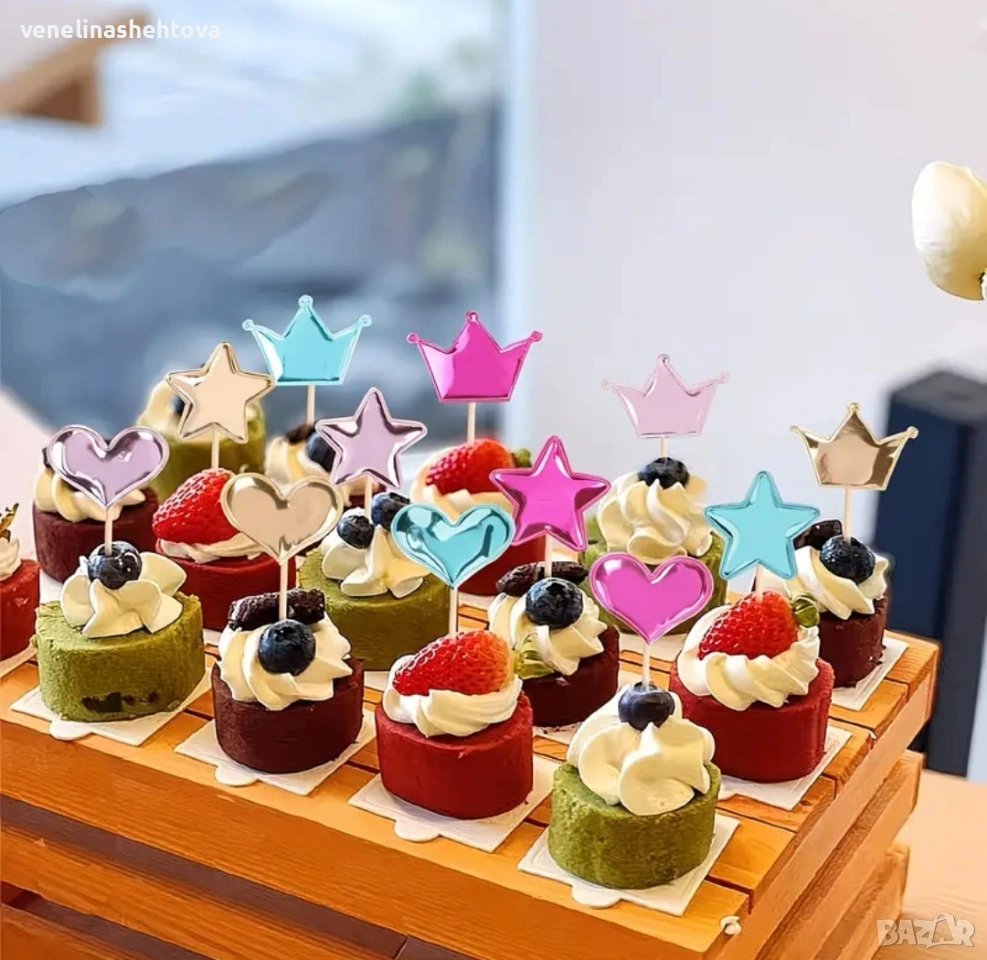 40 броя звезда сърце корона цветни топери на клечка за декорация на торта → Обява 54094949