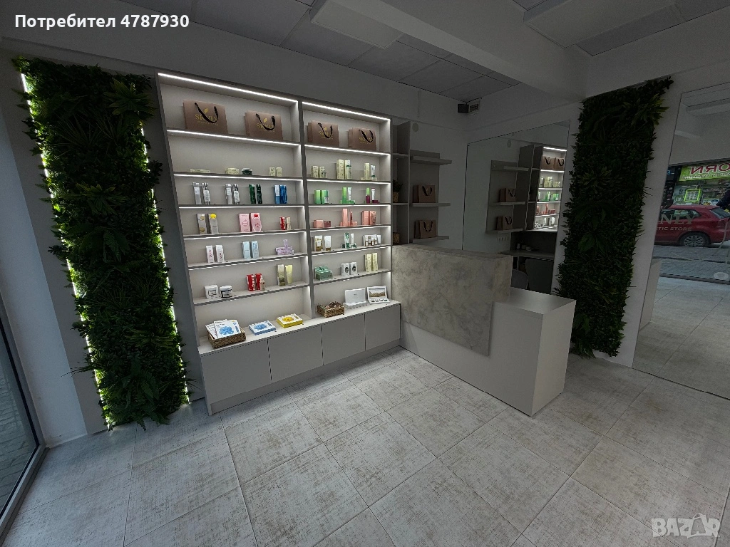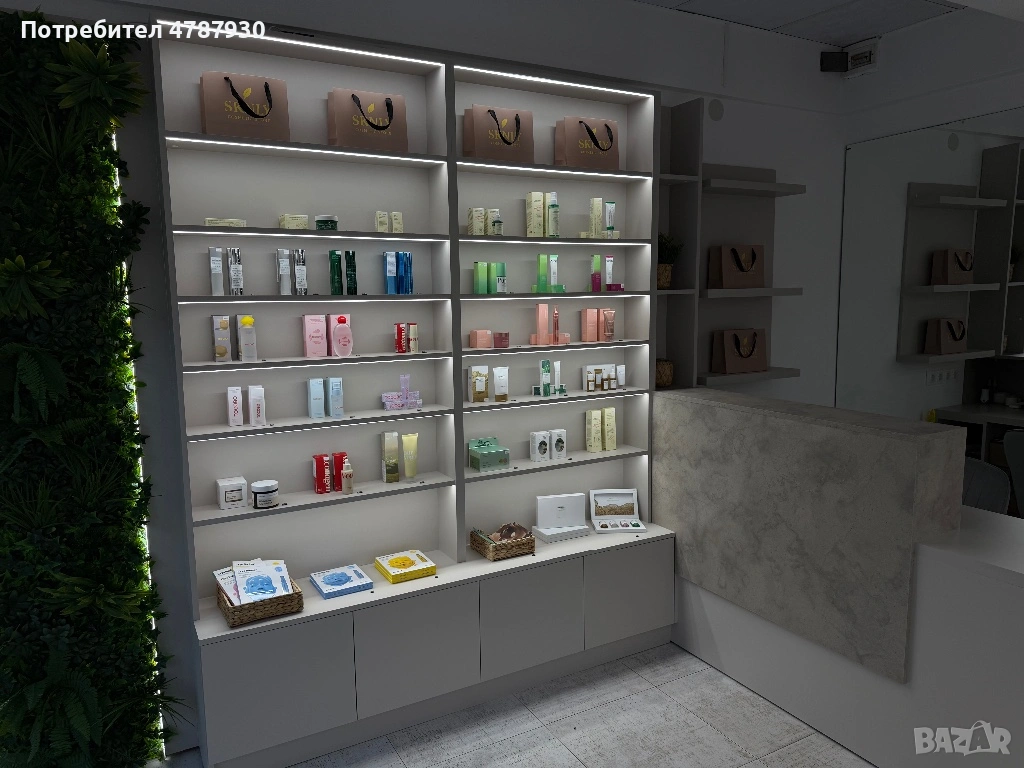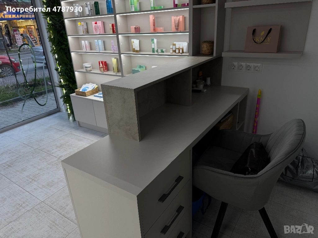 Мебелите са в отлично състояние, с минималистичен и стилен външен вид, подходящи за козметичен салон, бутик или друг търговски обект. Цветовете са неутрални и лесно се съчетават с различен интериор.