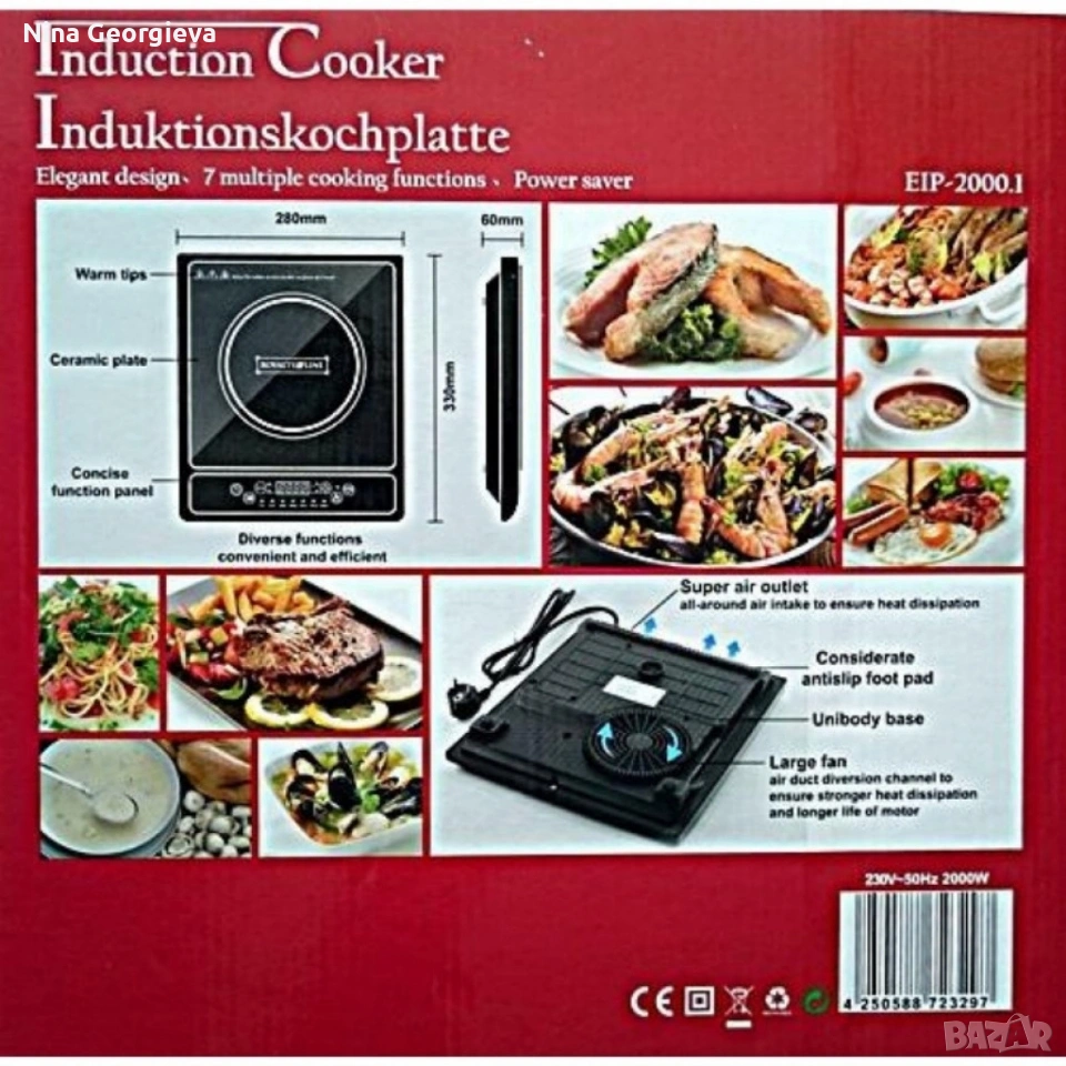 Преносим индукционен котлон Royalty Line EIP-2000.1 - 2000W, 7 режима на готвене
