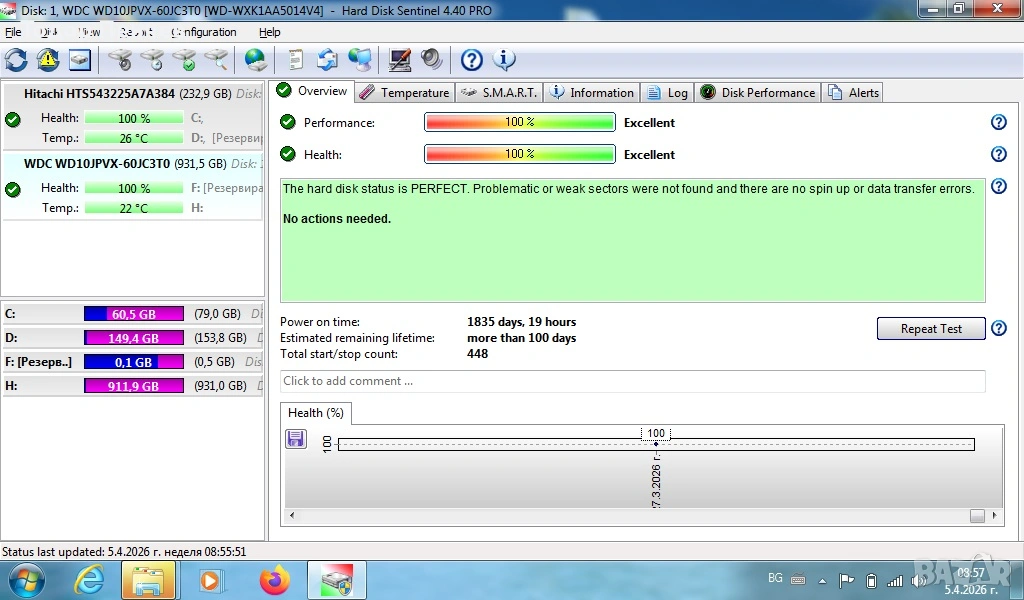 Диска е изправен и си работи нормално, само дето е въртян малко повече време, затова и цената е редуцирана.