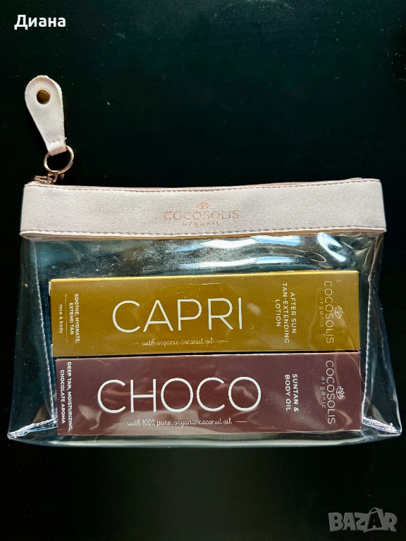 Комплект Cocosolis CAPRI Sun Tan и Choco Sun Tan & Body Oil в несесер. Срок на годност - 12.2027 година
