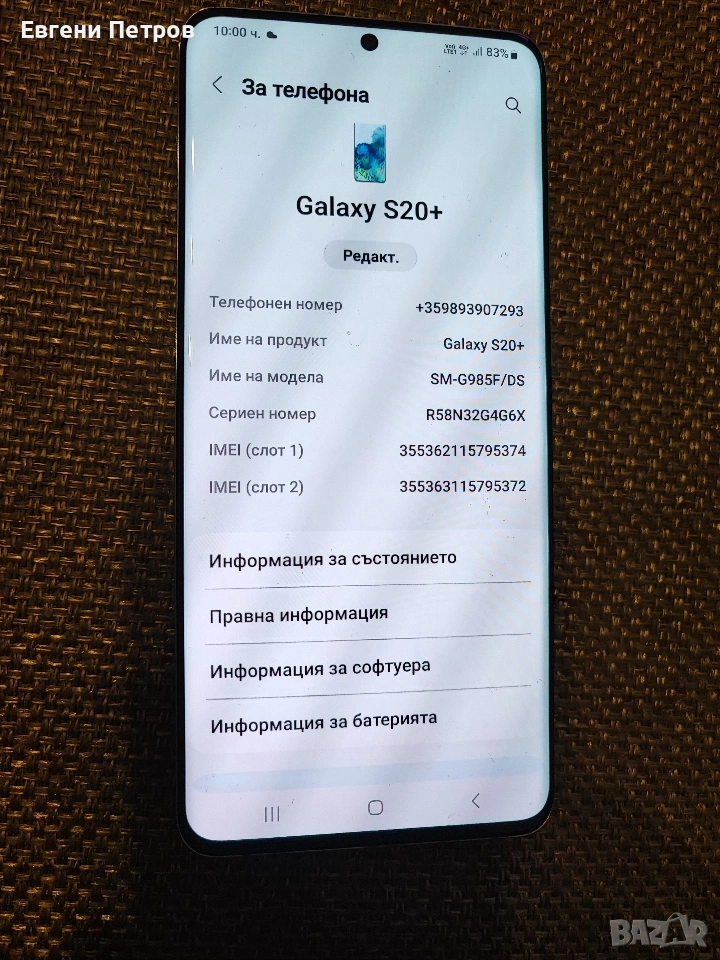 Samsung S20 plus. Отлично състояние → Обява 54095499