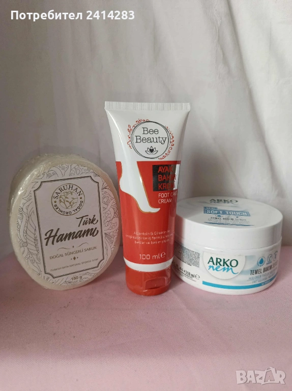 Промо 916-ароматен сапун гъба 150 гр.,крем крака и нежен крем за тяло → Обява 54095572