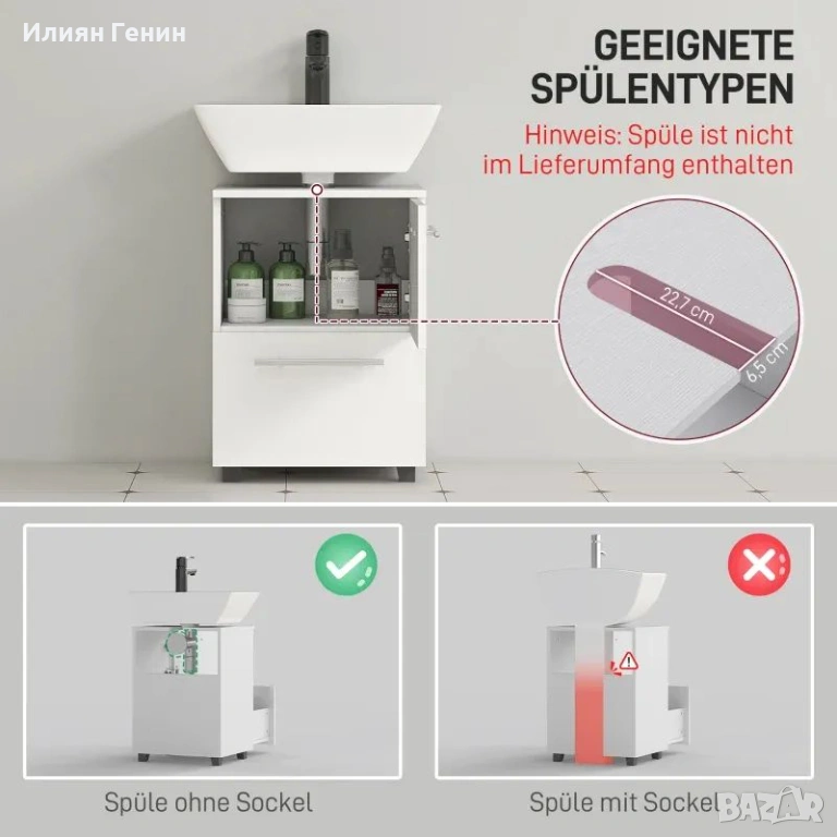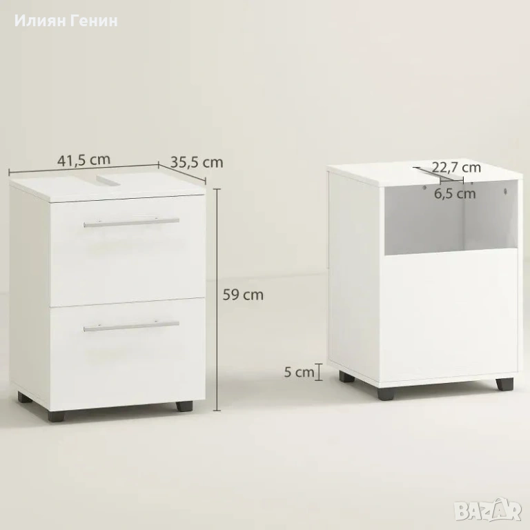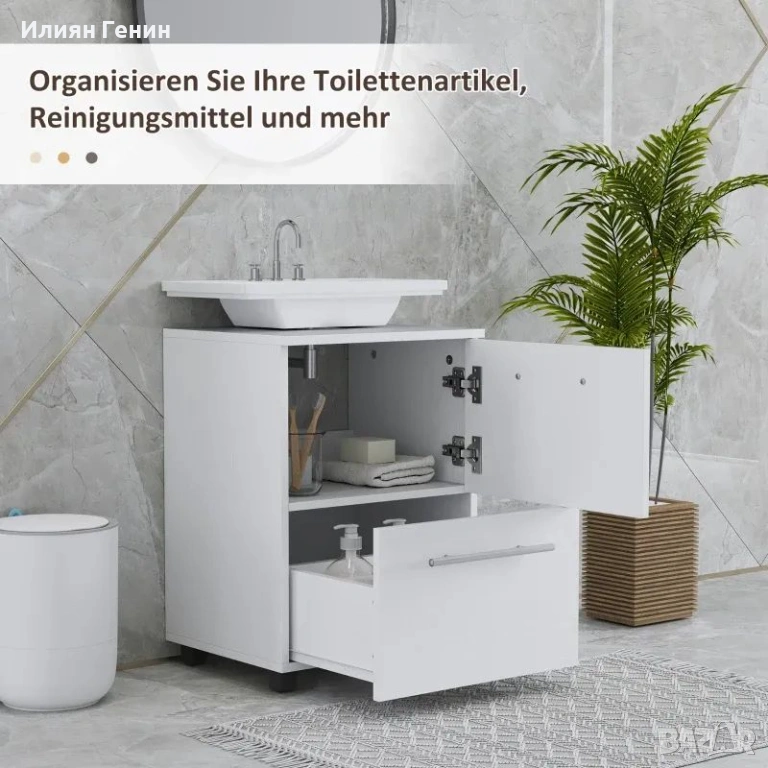 ✔ Шкаф и чекмедже за организиране на тоалетни принадлежности и почистващи препарати