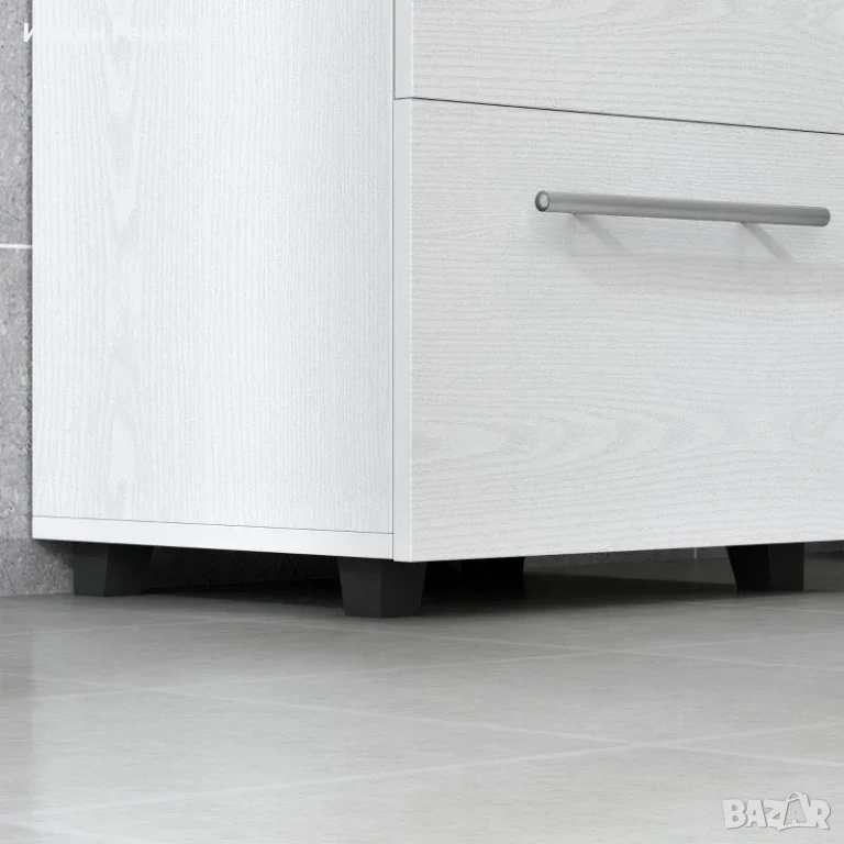 Здрава конструкция: Изработена от здрава ПДЧ, тази мебел за баня лесно издържа на ежедневна употреба. Противоплъзгащите подложки предпазват подовете ви от надраскване, а повърхността с меламиново покритие улеснява почистването.