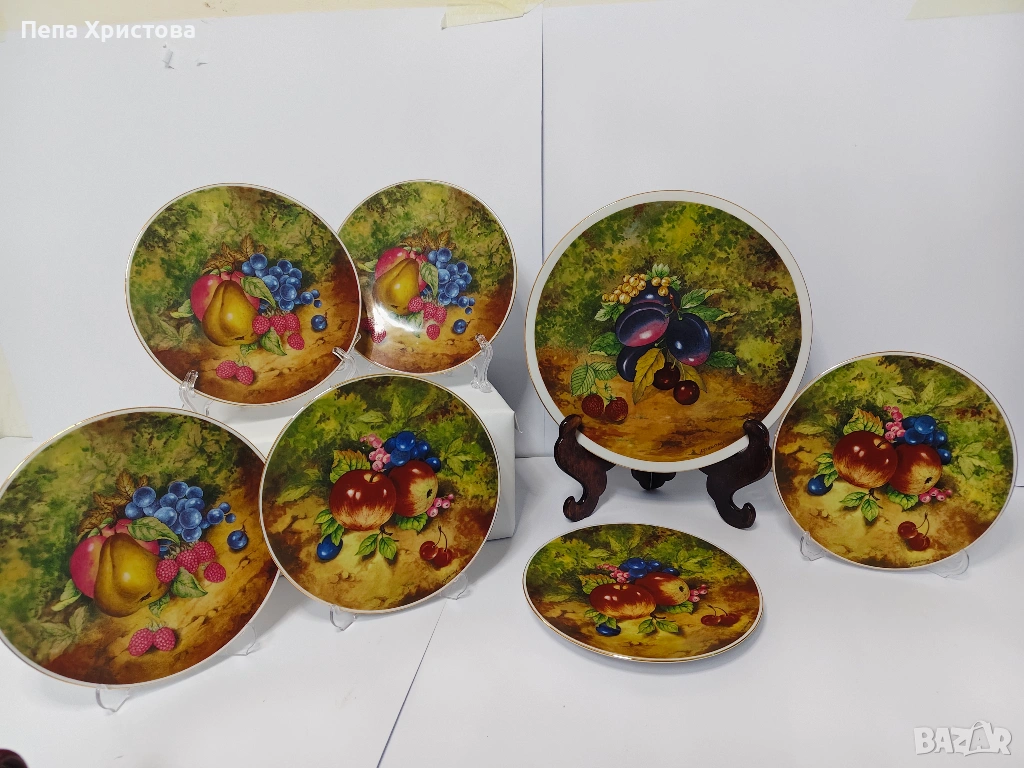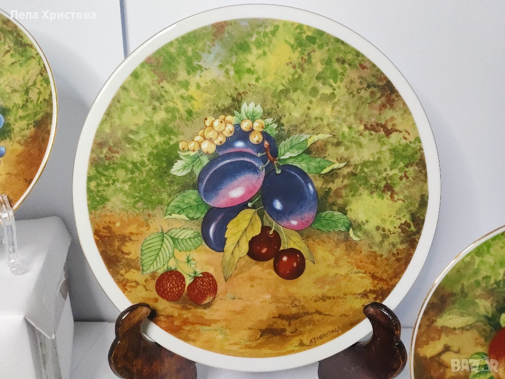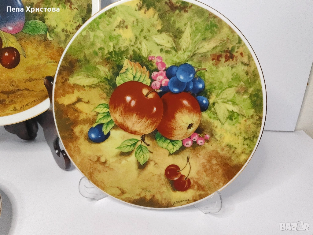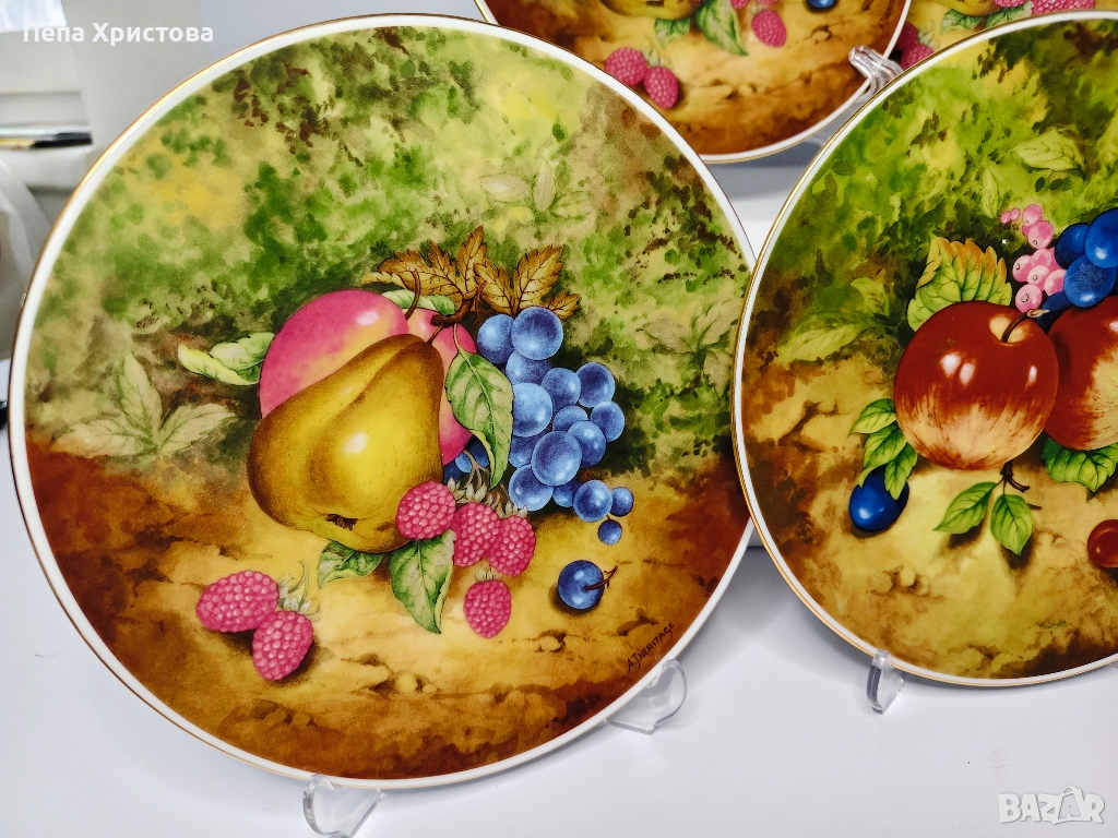 Сервиз за торта от чешки порцелан с пищна декорация от плодове по картини на А. Дж. Херитидж - Concordia Lesov, близо до Карлови Вари, Чехия. Изработка след 1991г.