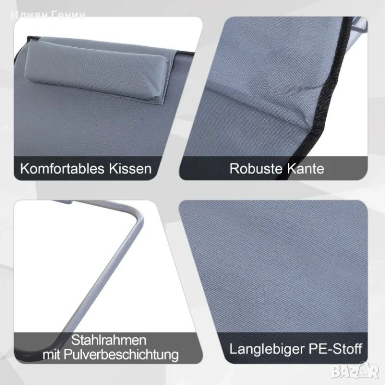 Сгъваем шезлонг Outsunny, с облегалка за глава, с регулируема облегалка в 5 позиции, плажен шезлонг с чанта за носене - 50.00 €.