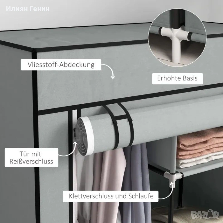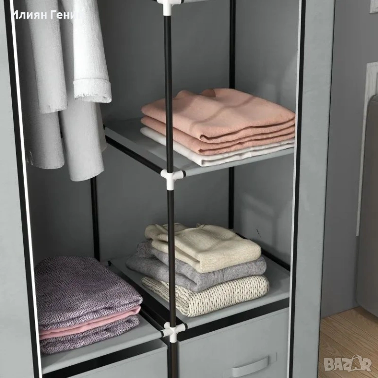 Нетъкан калъф: Предпазва дрехите ви от прах и други. Вратата с цип може да се навие и закрепи с кукички за лесен достъп до дрехите ви.