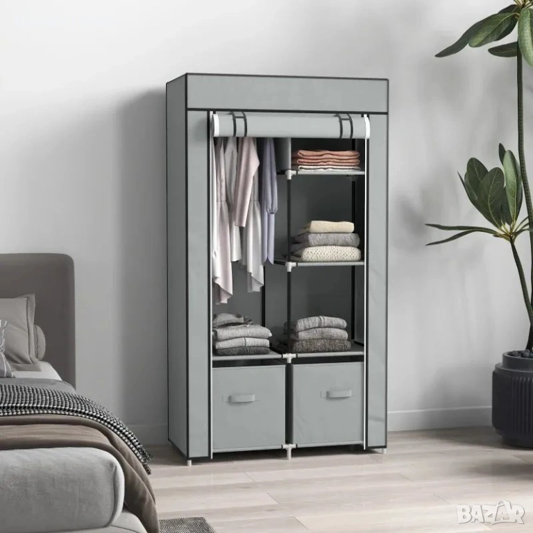 Кажете сбогом на хаоса: Този преносим гардероб разполага с релса за дрехи за окачване на палта и рокли без намачкване, две плъзгащи се чекмеджета за плат с дръжки и пет отделения за съхранение на сгънати дрехи, чанти и спално бельо.