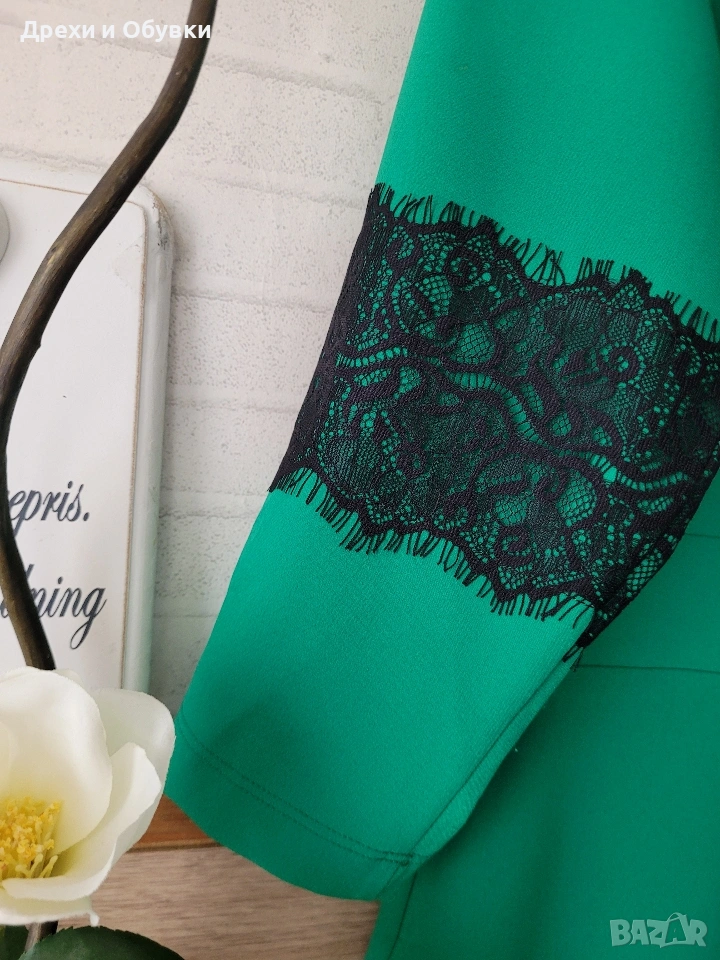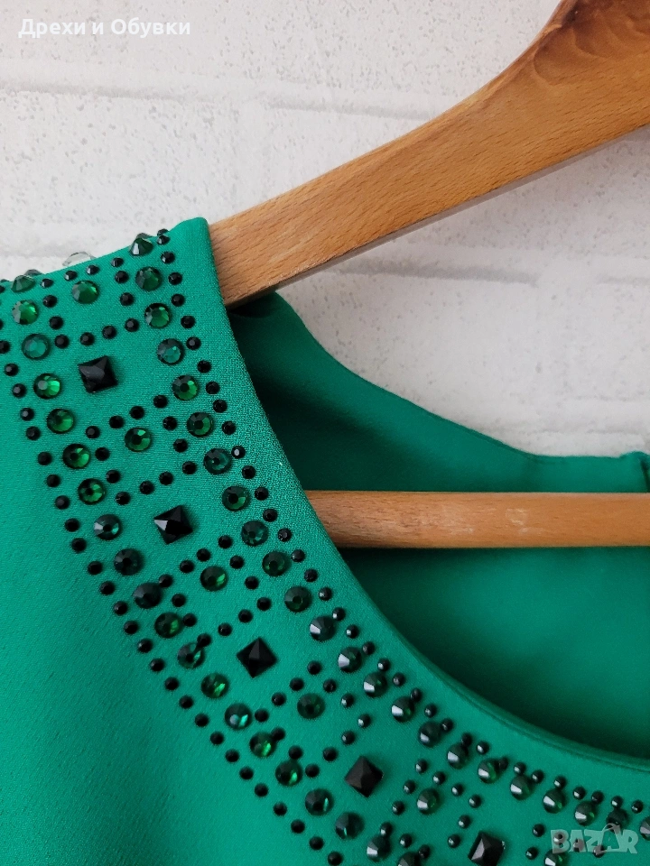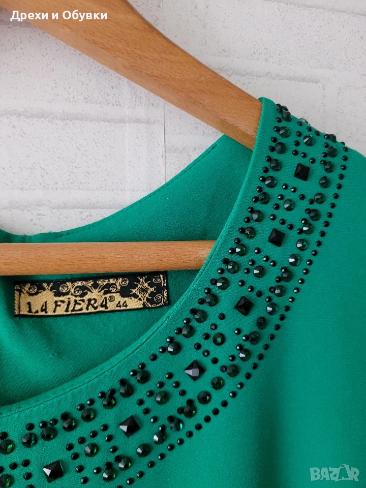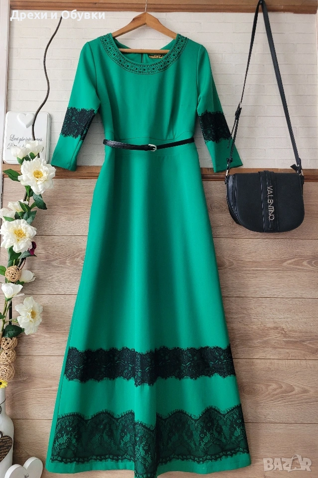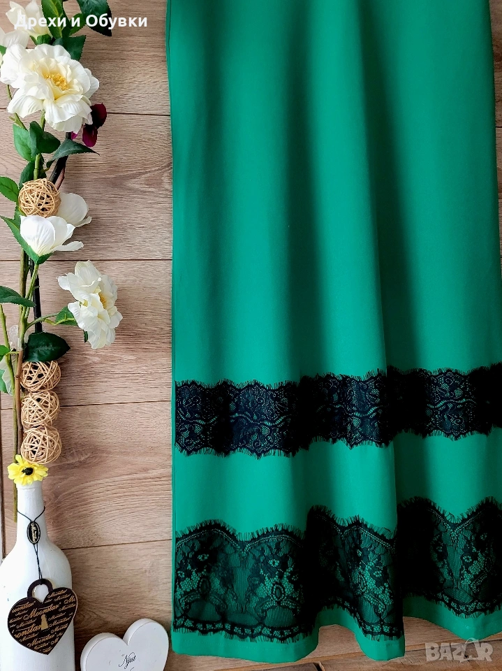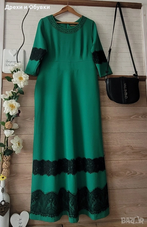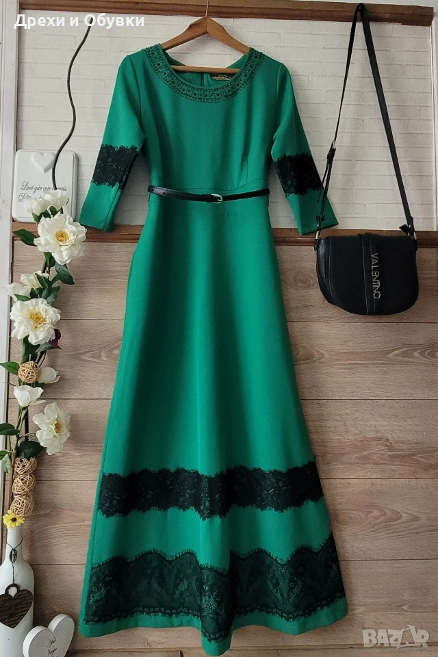 Официална дълга рокля в изумрудено зелено на италианската марка LA FIERA – блясък и изящество ✨ Впечатляваща дълга рокля, създадена да подчертае женствеността с финес и аристократично излъчване. Наситеният изумруденозелен цвят носи усещане за дълбочина и лукс, докато деликатните детайли превръщат модела в истинско бижу. Горното деколте е елегантно акцентирано с фино инкрустирани камъни, които улавят светлината и придават нежен, изискан блясък. Ръкавите и долната част са завършени с черна дантела, добавяща мистичност и контраст, който подчертава силуета по изключително стилен начин. Разме Л Гръдна 94-96см ( има еластичност). Дължина 140см Създадена за специални поводи – вечерни събития, балове и официални вечери. Като нова! Цена 39 EUR Още снимки в коментар