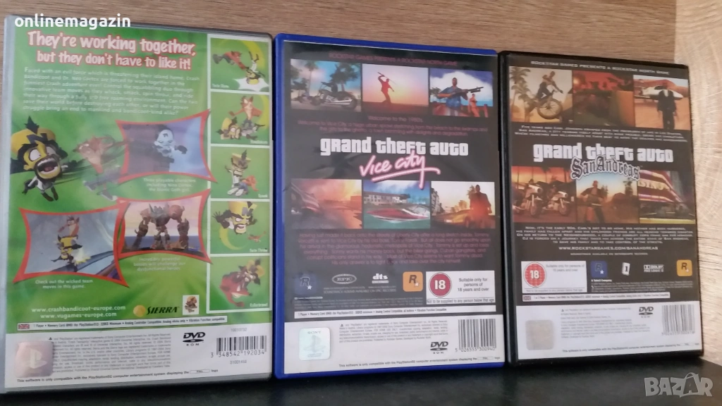 Продавам 3 оригинални игри за PlayStation 2 . CRASH, GTA Vice Sity и GTA SanAndreas . CRASH и GTA Vice Sity са с книжка . Работят отлично, като нови . Изпращам с Еконт, Спиди или лично предаване за град Бургас. Продават се заедно. Цената е обща за трите заедно .