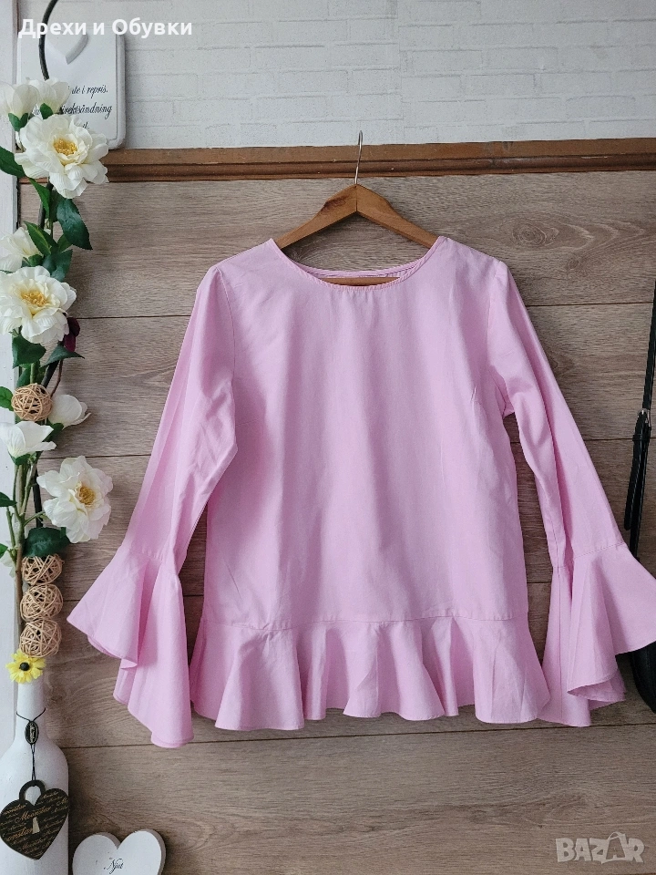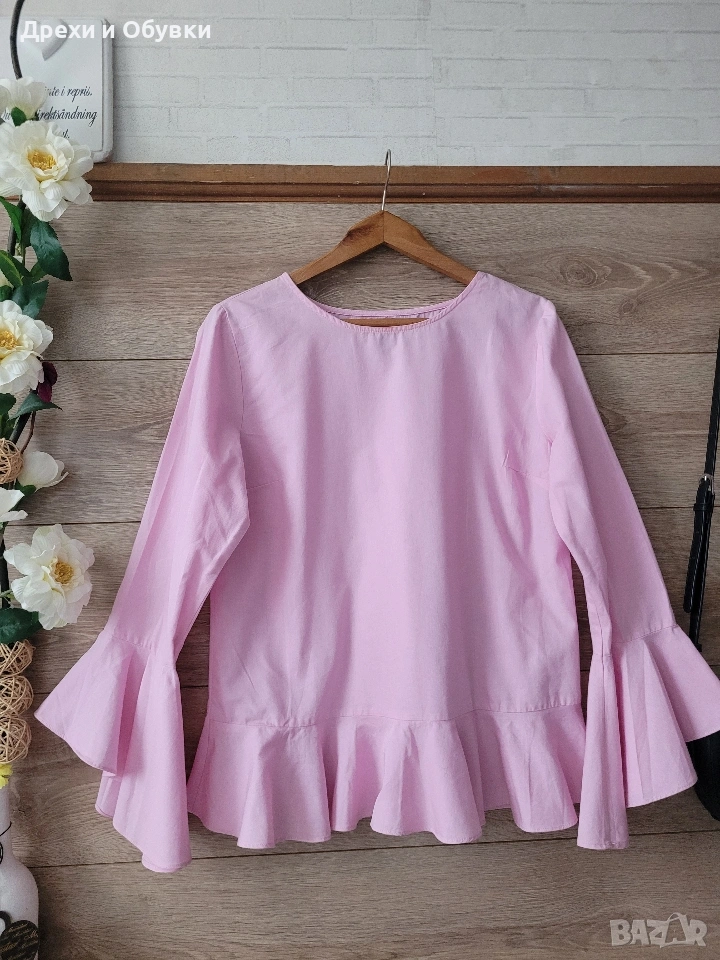 Разкошна розова блузкан с ефектен дизайн ATMOSPHERE Материята 100% висококачествен памук! За ежедневието или за елегантна визия. Размер Л Дълга 64см, гръдна до 100см Цена 17€