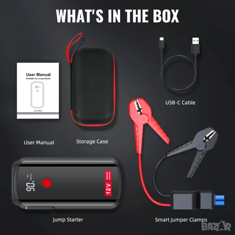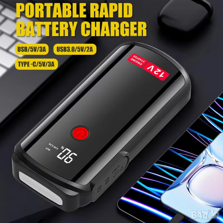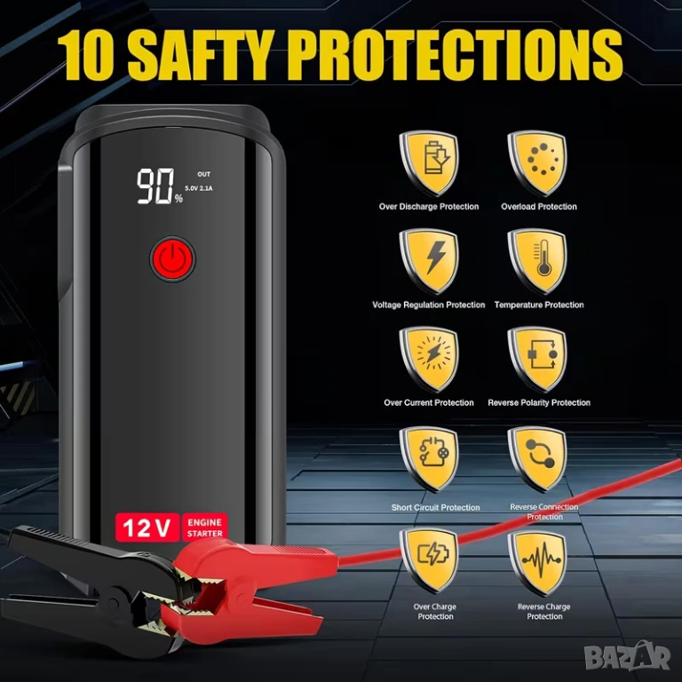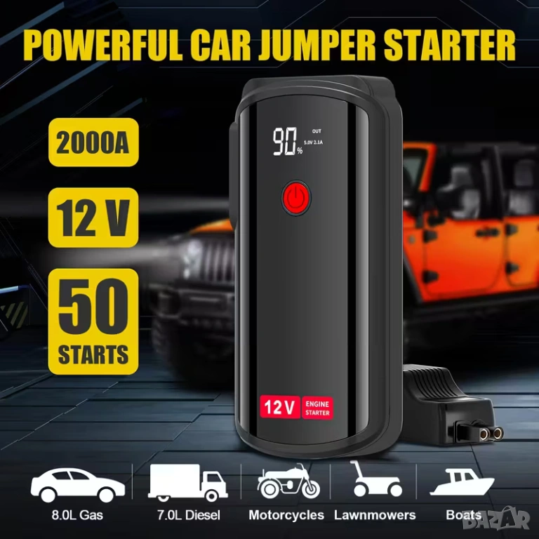 Jump Starter (бичѐ) - 12V/2000А бустер за подаване на ток за двигатели до 8.0 L бензинови и до 7.0 L дизелови + Power Bank