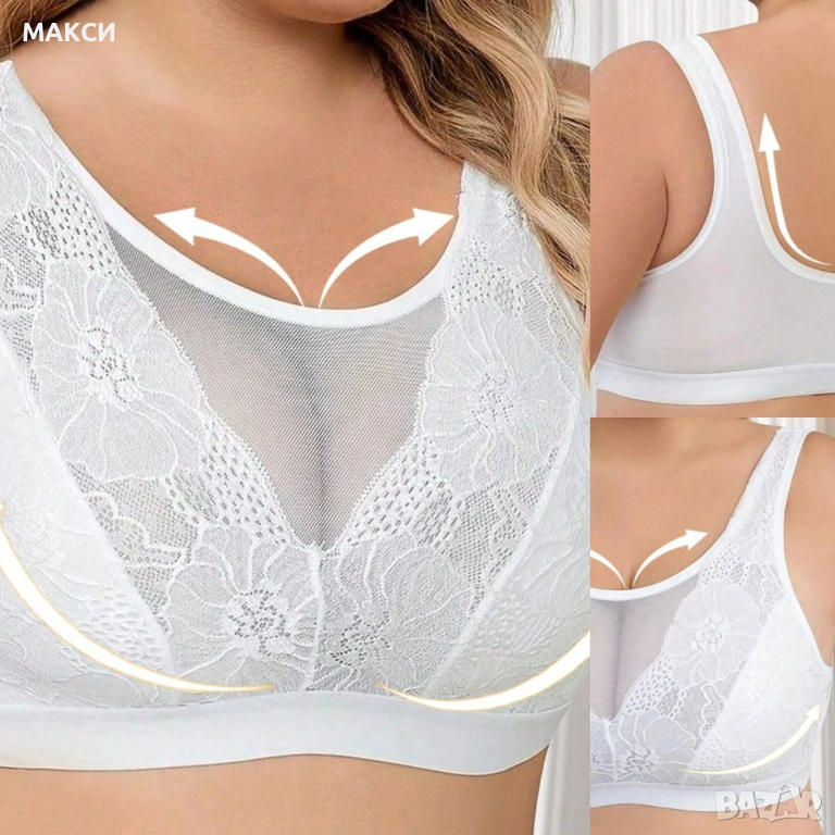 Красиво макси еластично бюстие в снежно бяло с дантела и ефектна прозрачна част /без банел, подплънк → Обява 54096143