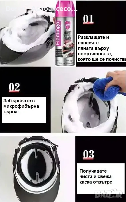 Активна пяна за почистване и грижа за мекта подплата на каските, както и за външно почистване на корпуса и стъклото.