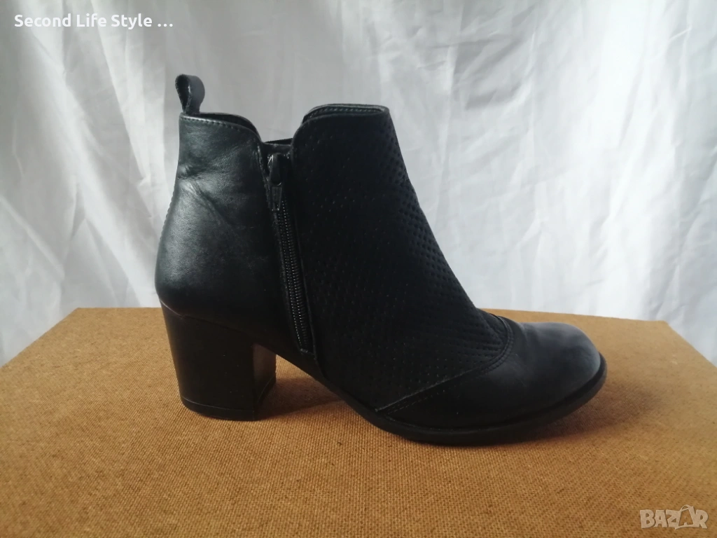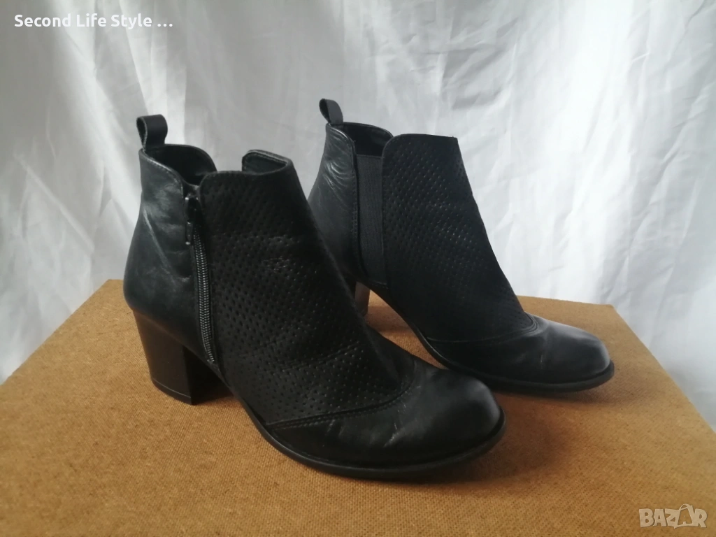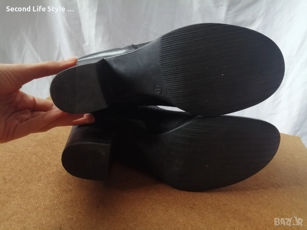 № 39 дамски боти естествена кожа на ток Mon Dieu - в черен цвят