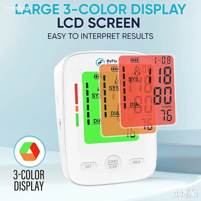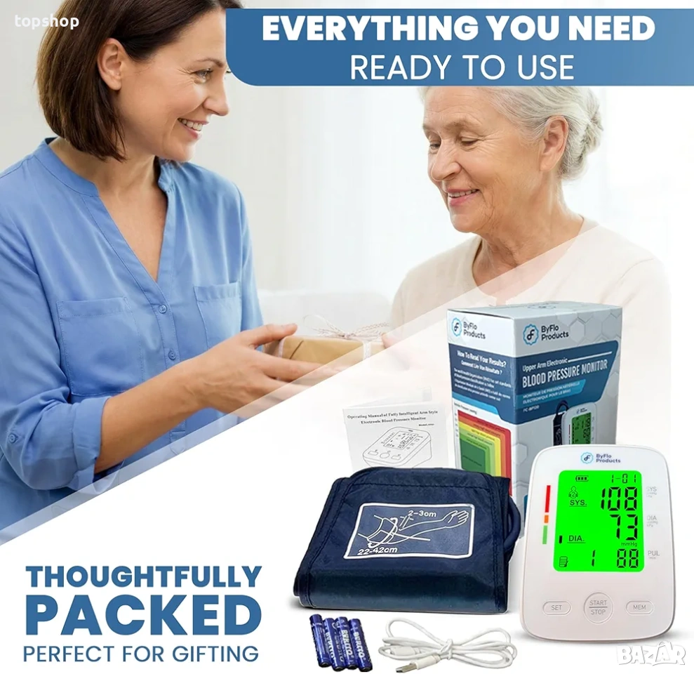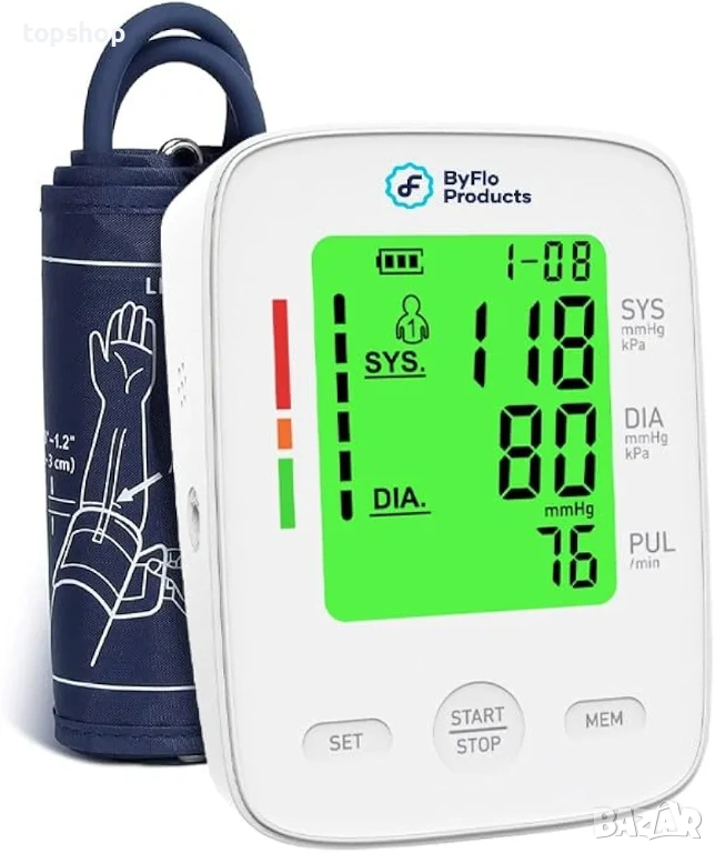 Нов автоматичен апарат за кръвно налягане ByFloProducts с цветен дисплей и маншет 22-42см