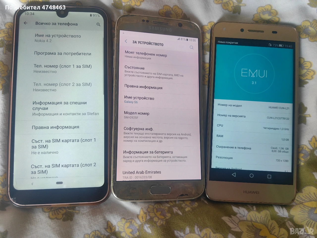3telefona zdravi displei, Samsung s6, Nokia 4,2, huawei y5 II → Обява 54096357