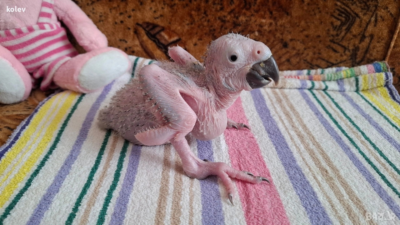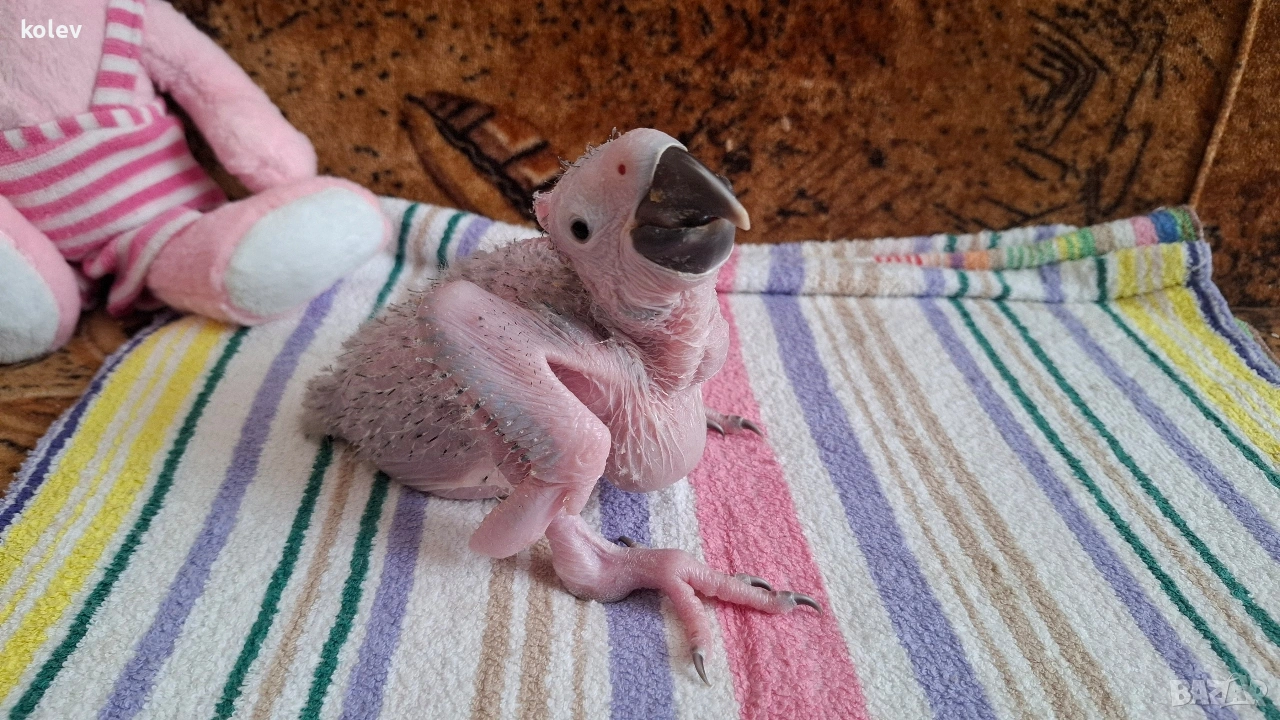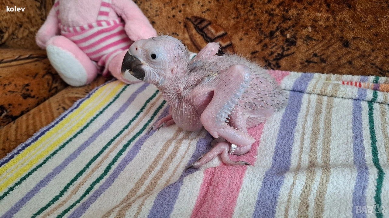 Синьо жълта ара бебе излюпена на 27.02.26г. Възможност за запазване чрез капаро. Документи и пръстен. За повече информация на посочения телефон.