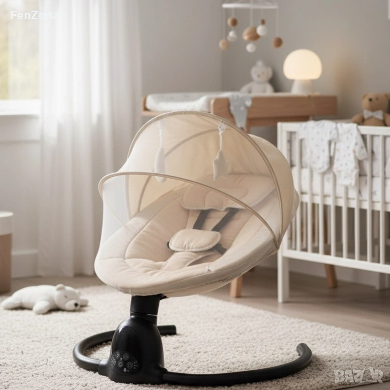 Интелигентен бебешки шезлонг с Bluetooth, дистанционно управление и автоматично люлеене