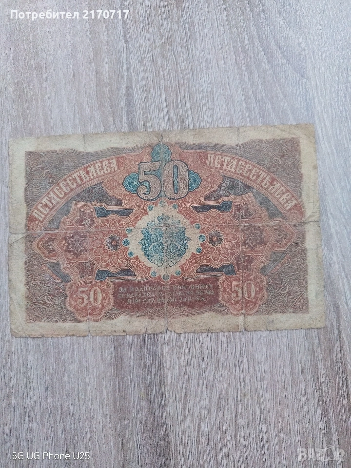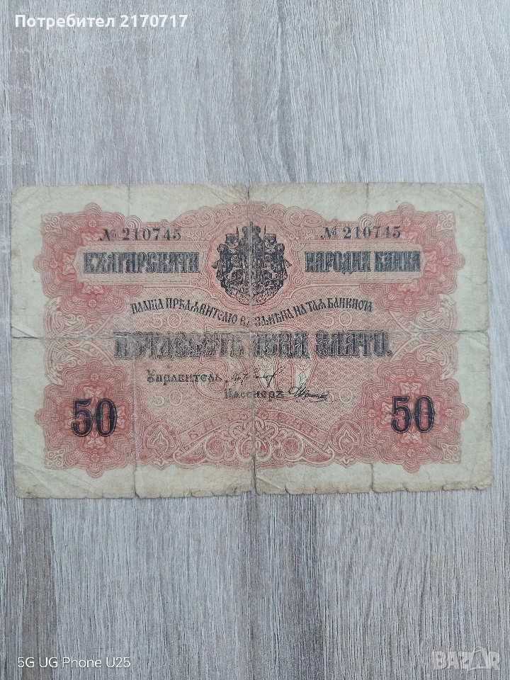 Банкнота 50 лева злато 1916 година → Обява 54096933
